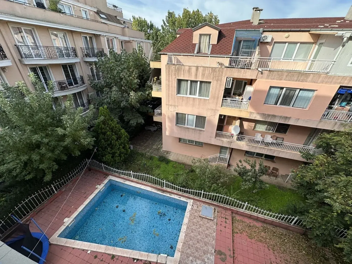 Здание построено в 2010 году и введено в эксплуатацию (Акт 16). Это пятиэтажный кирпичный дом с ухоженной территорией и внутренним двором. В комплексе представлены апартаменты площадью от 35 до 90 м² с видами на бассейн или город. Управляющая компания обеспечивает круглогодичное обслуживание общих зон и поддержание порядка.