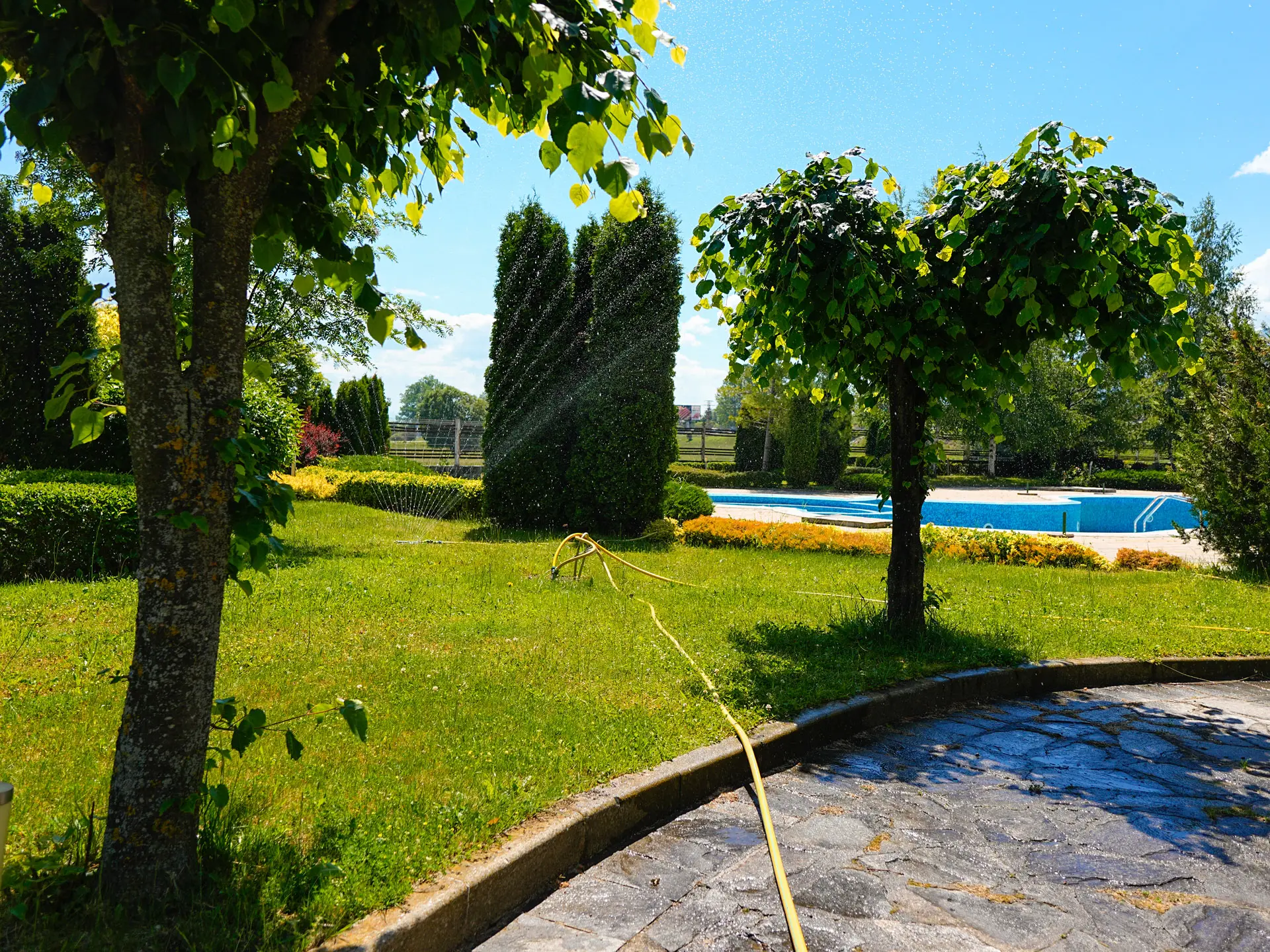 Открытый бассейн с зоной для шезлонгов