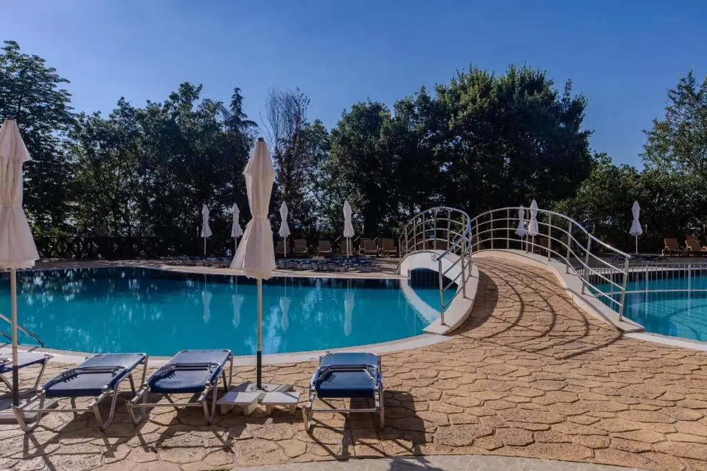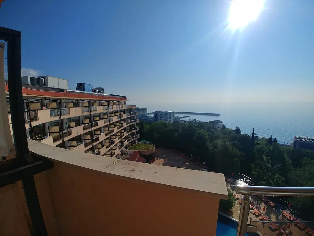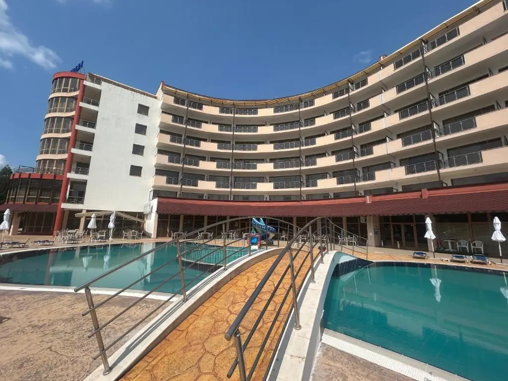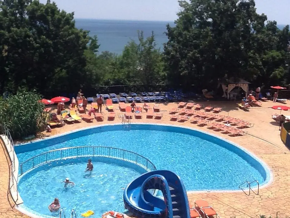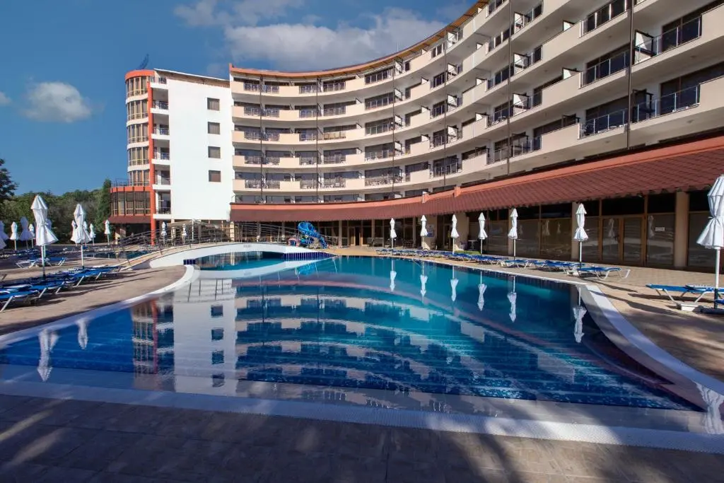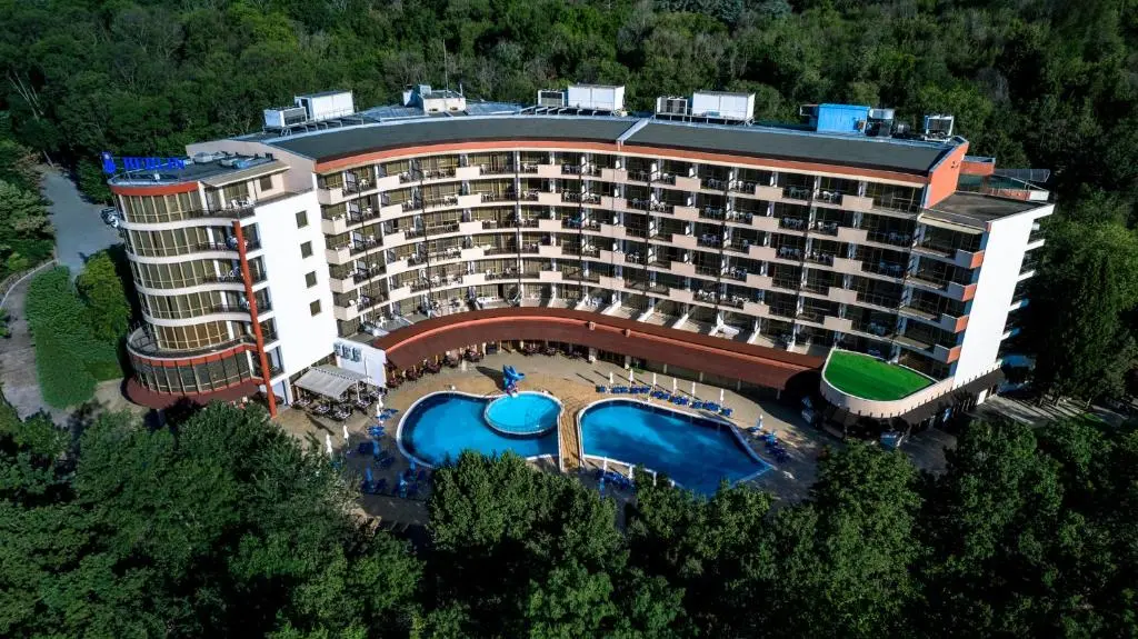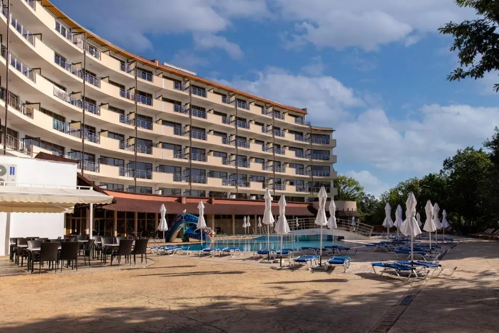 Отель находится на холме в тихой парковой зоне, всего в нескольких минутах пешком от пляжа и яхтенного порта. Расстояние до центра курорта составляет 1,7 км, до аэропорта Варны — 29 км, что делает его удобным как для отдыха, так и для коротких поездок по региону.