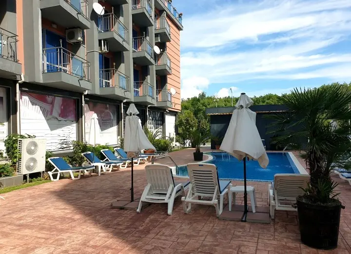 Cacao Residence — это современный и уютный жилой комплекс класса люкс, расположенный в южной части популярного курорта Солнечный Берег. Комплекс отличается удачным местоположением — всего в 300 метрах от знаменитого пляжа Какао Бич, одного из лучших на болгарском побережье. Район отличается зелеными аллеями, чистым воздухом и спокойной атмосферой, что делает его идеальным местом для отдыха и проживания круглый год.