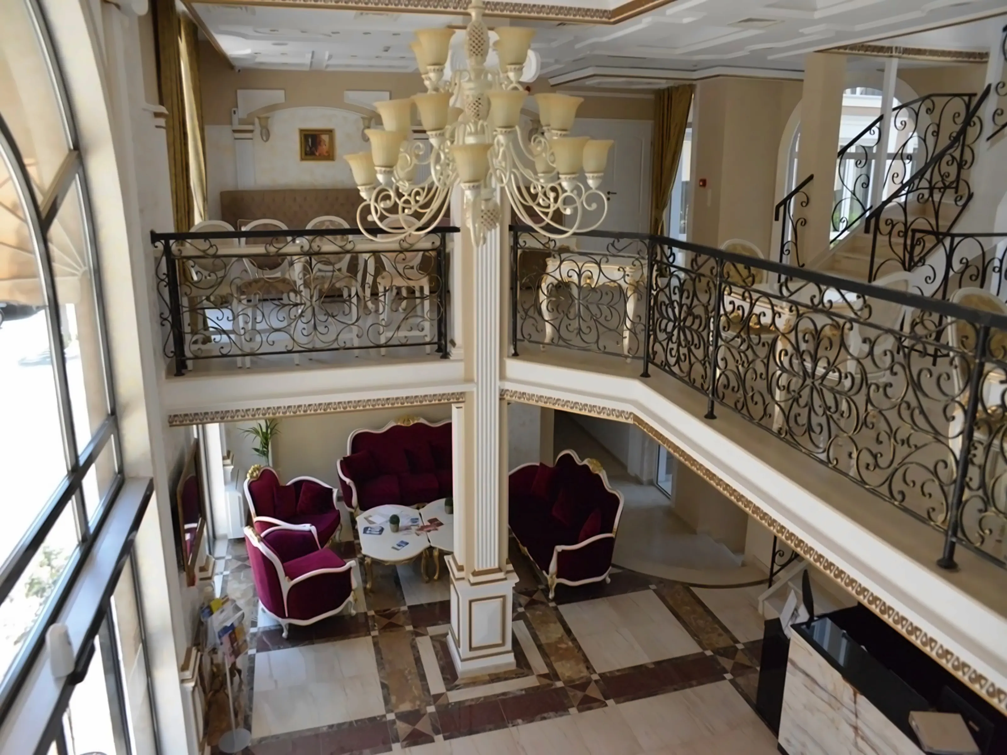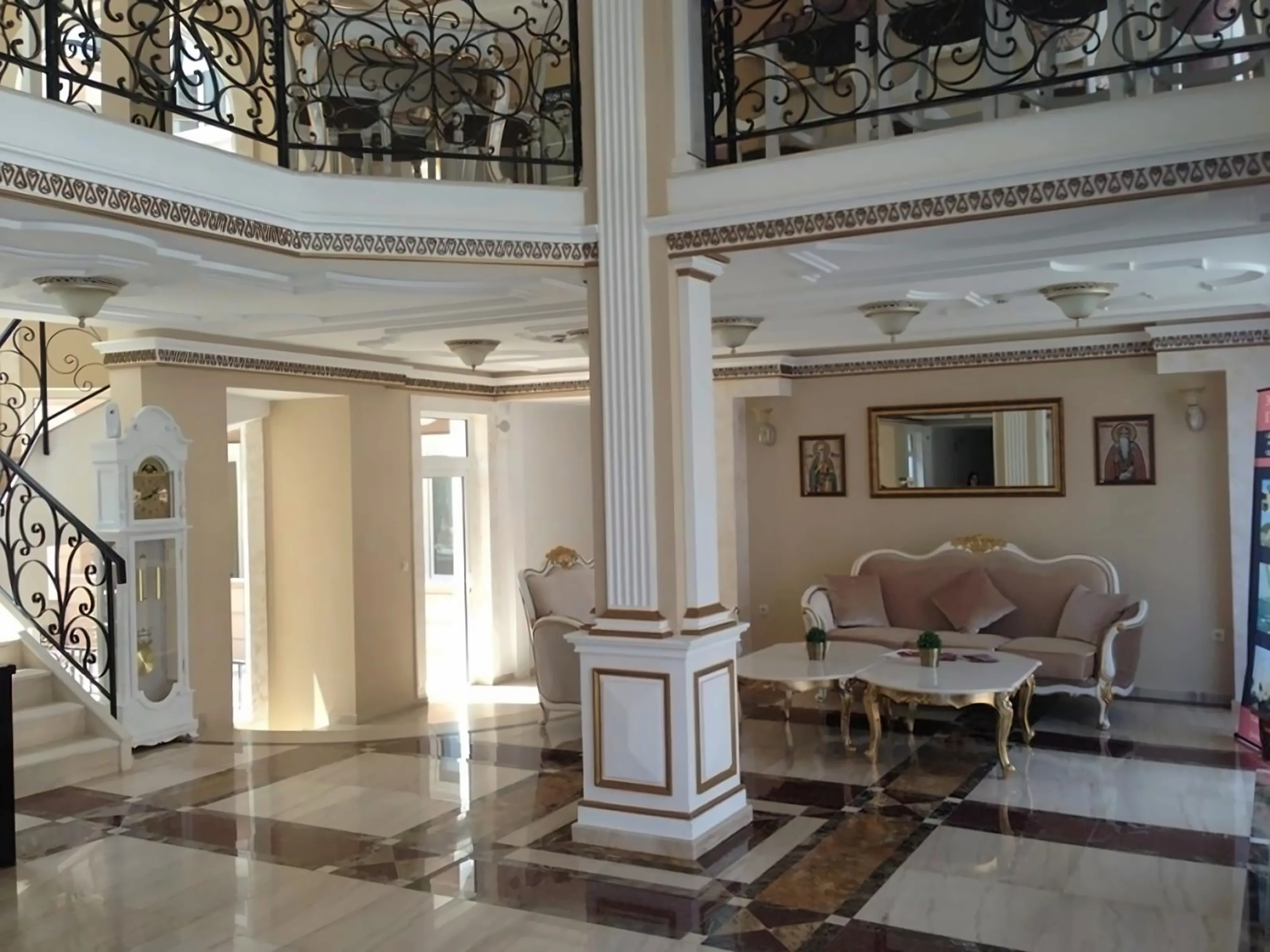 Просторное лобби с баром и стойкой регистрации