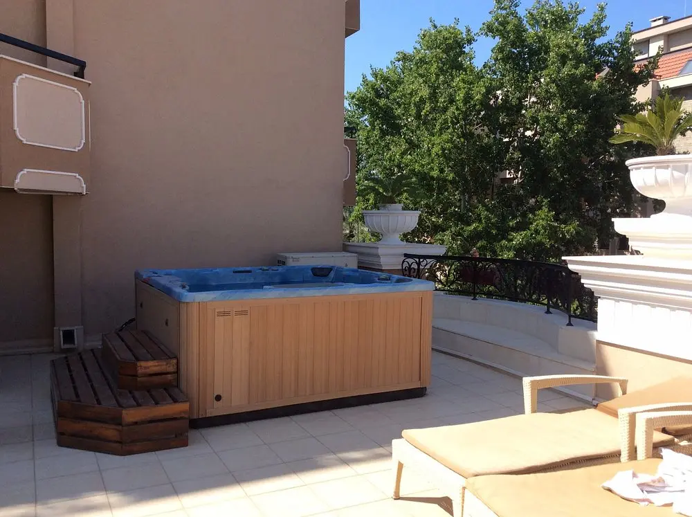 VIP-терраса с джакузи, шезлонгами и видом на бассейн