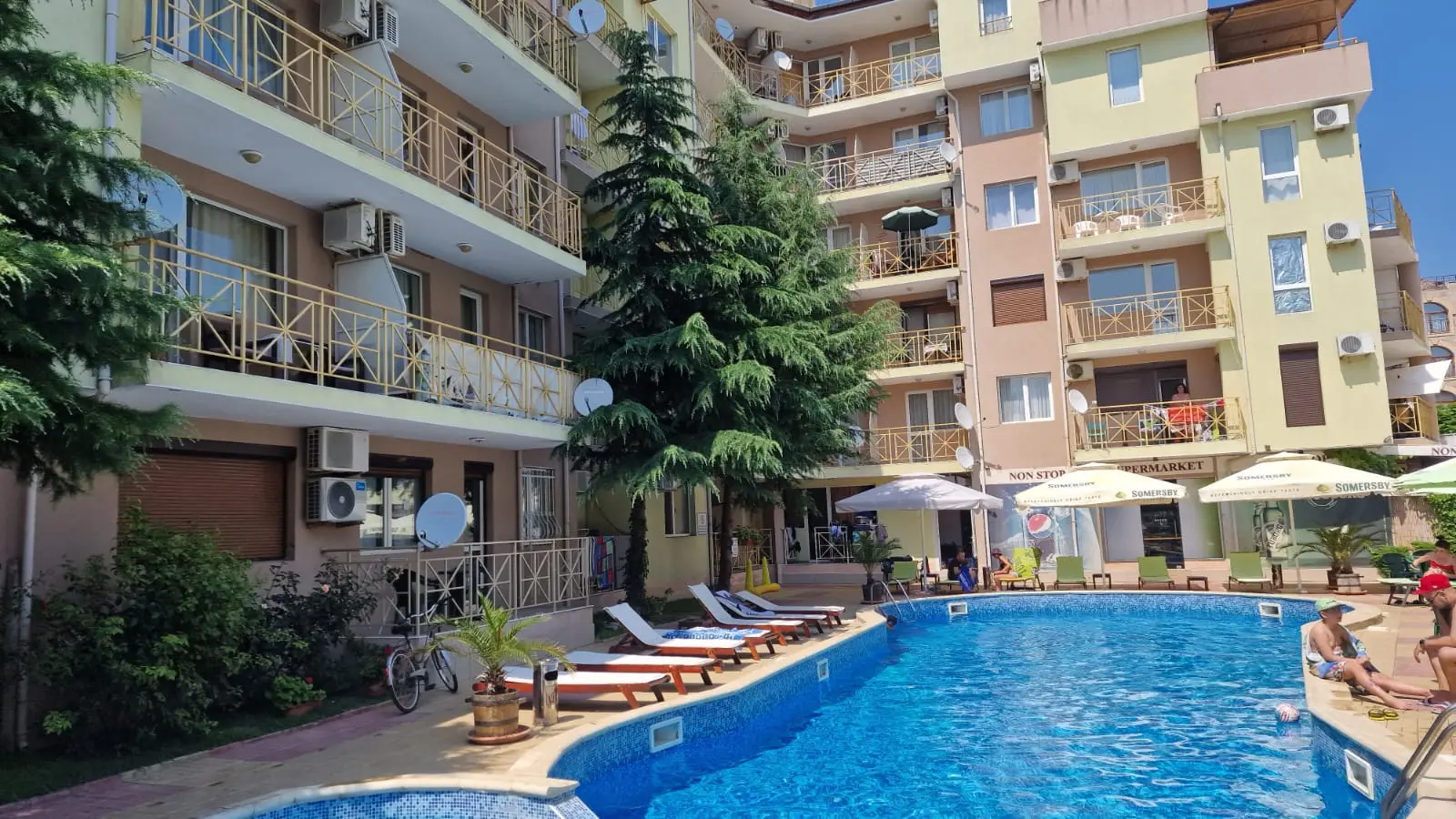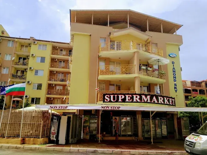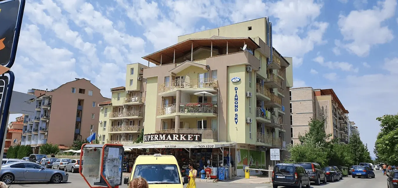 Diamond Sky — современный жилой комплекс закрытого типа, расположенный в самом сердце курорта Солнечный Берег, в спокойном и зелёном районе, всего в 500 метрах от песчаного пляжа. Комплекс идеально подходит как для летнего отдыха, так и для комфортного круглогодичного проживания, сочетая тишину и уединение с близостью всей курортной инфраструктуры.