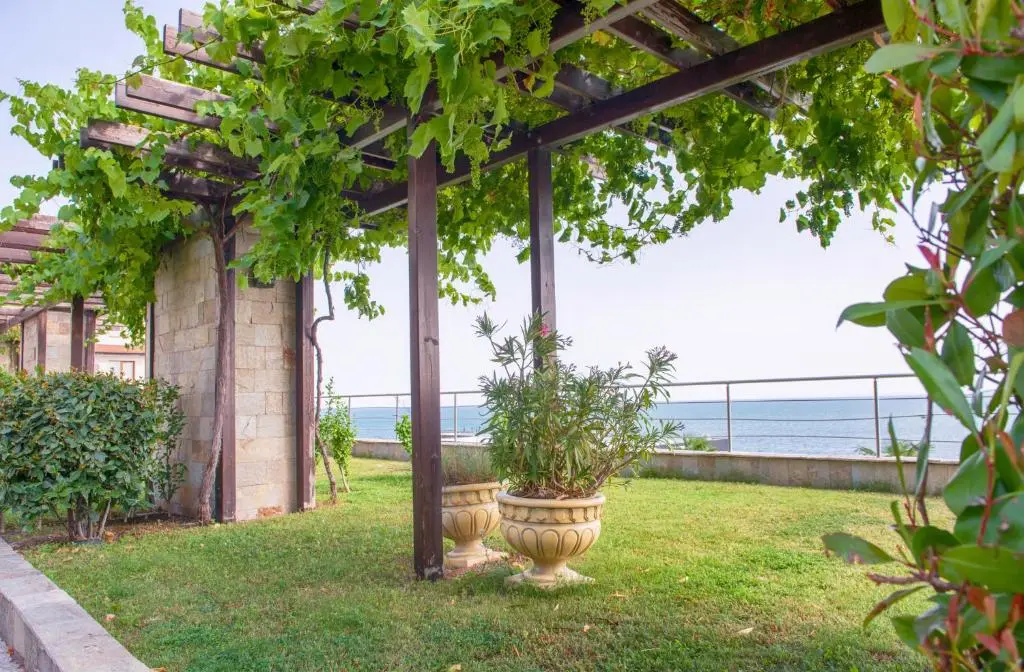 просторный сад с экзотическими растениями и зонами отдыха;