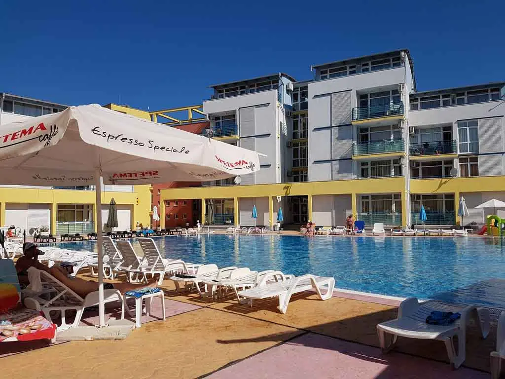 Особое преимущество комплекса — его расположение. До популярного пляжа Cocoa Beach с широкими песчаными зонами, ресторанами и клубами около 500 метров. В пешей доступности находятся магазины, кафе, аптека, медицинский центр, остановки общественного транспорта, а также аквапарк Котва, футбольное поле и супермаркет, работающий круглый год. До старого города Несебр можно дойти пешком.