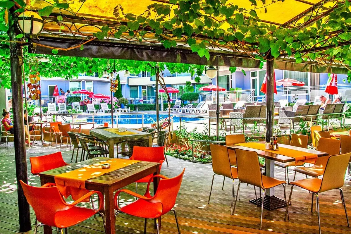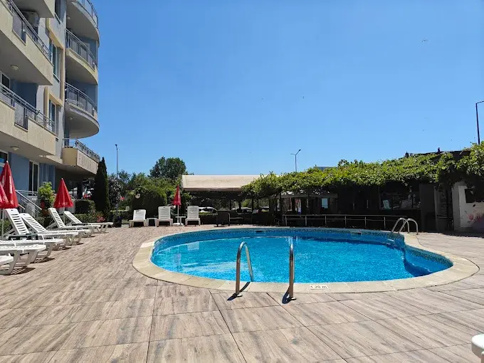Комплекс расположен в южной части Солнечного Берега, всего в нескольких минутах ходьбы от пляжа и вблизи знаменитого Cacao Beach с его ресторанами, пляжными клубами и атмосферой ночной жизни. В пешей доступности находятся магазины, кафе, остановки транспорта. До Старого Несебра — около 3 км, а до центра курорта можно дойти за 20–25 минут. Удобное расположение делает комплекс привлекательным как для отдыха, так и для аренды.