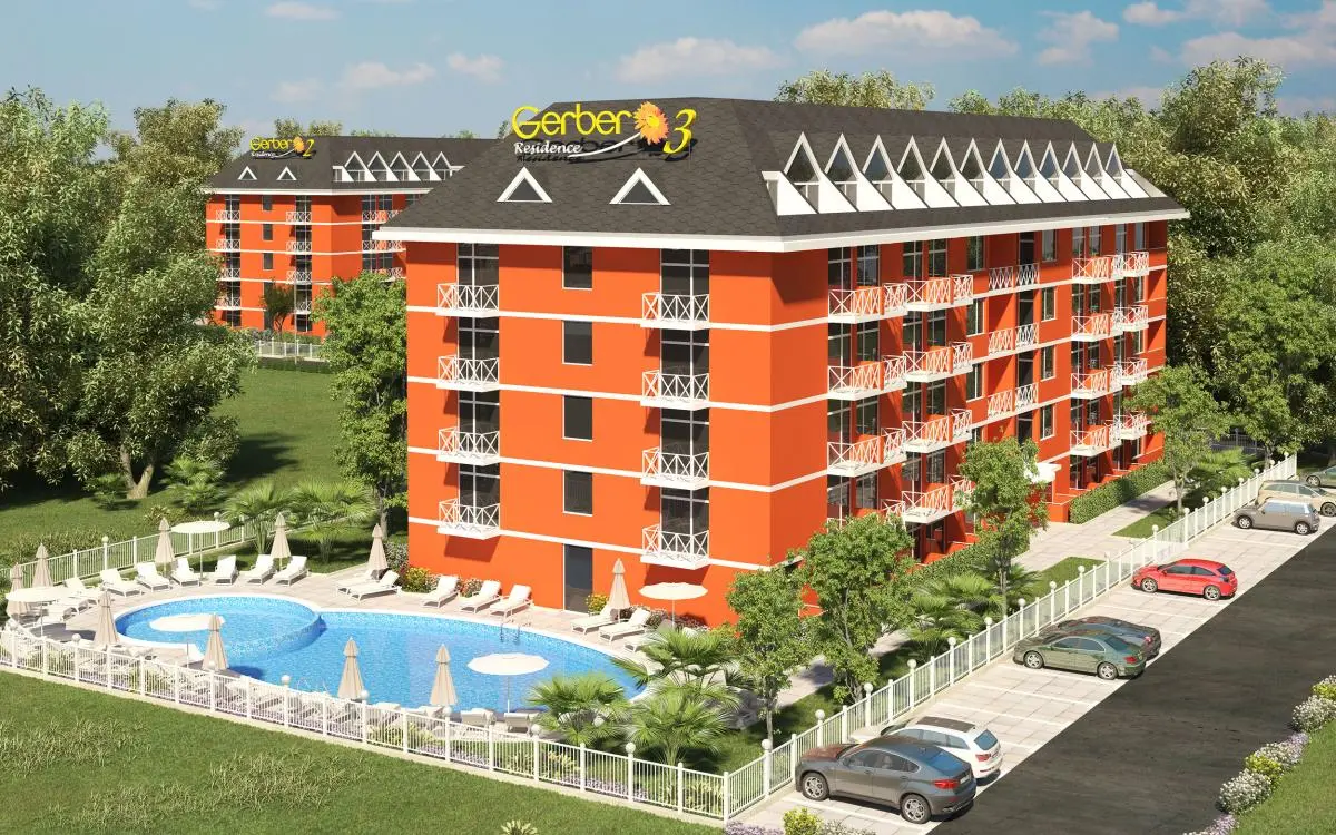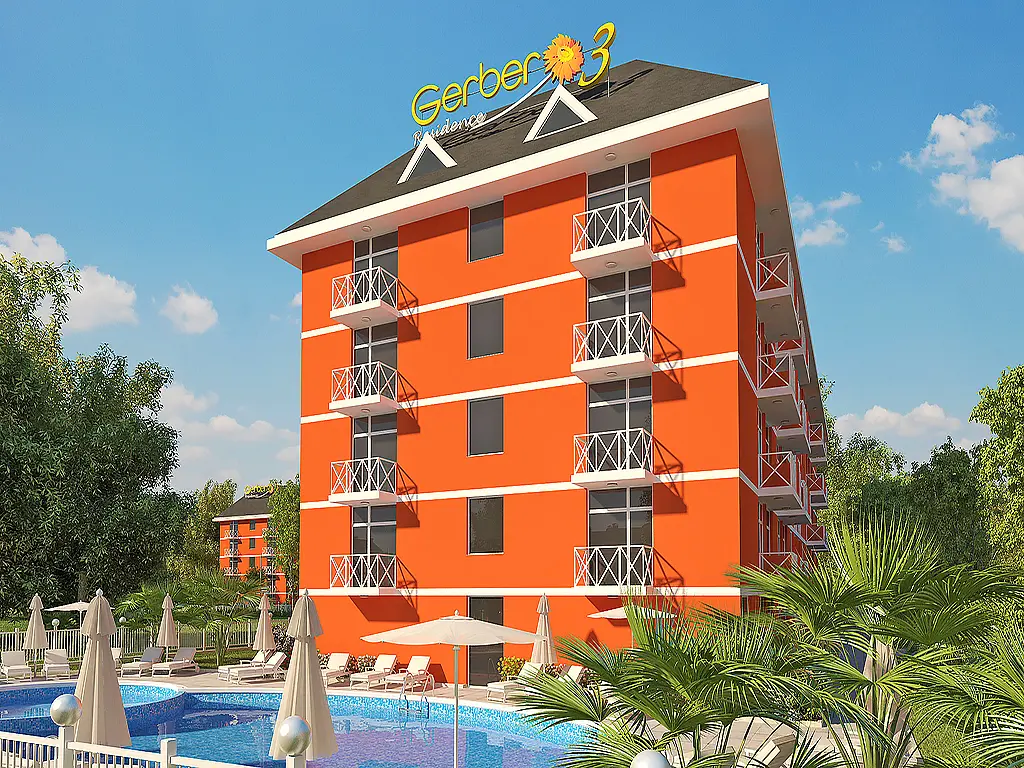 Gerber Residence 3 — современный жилой комплекс, расположенный в тихой и благоустроенной западной части курорта Солнечный Берег. Район отличается развитой инфраструктурой и близостью к зеленой парковой зоне, что делает комплекс комфортным как для летнего отдыха, так и для круглогодичного проживания. Расстояние до моря составляет около 400 метров, дорога к пляжу занимает несколько минут спокойным шагом.
