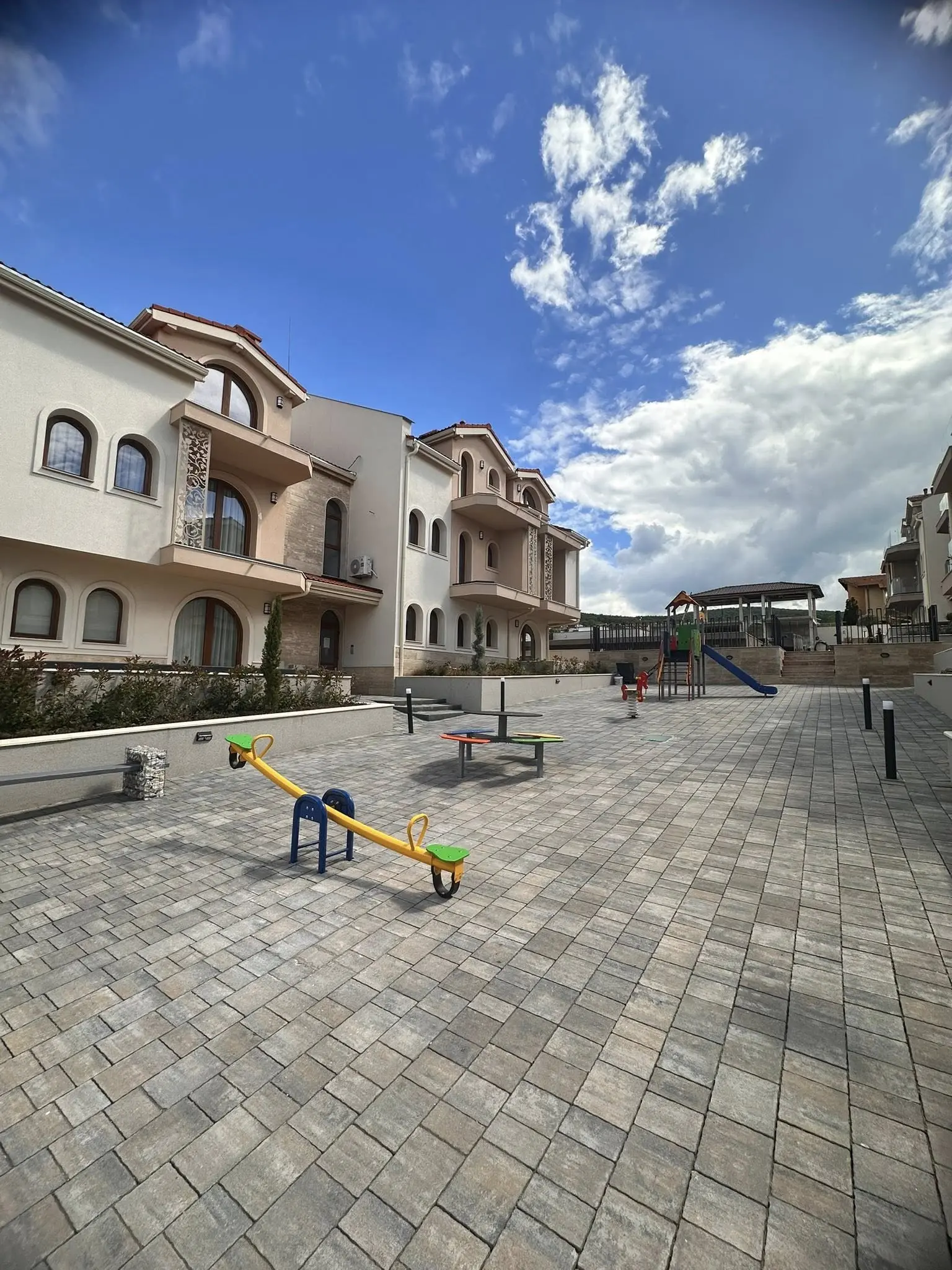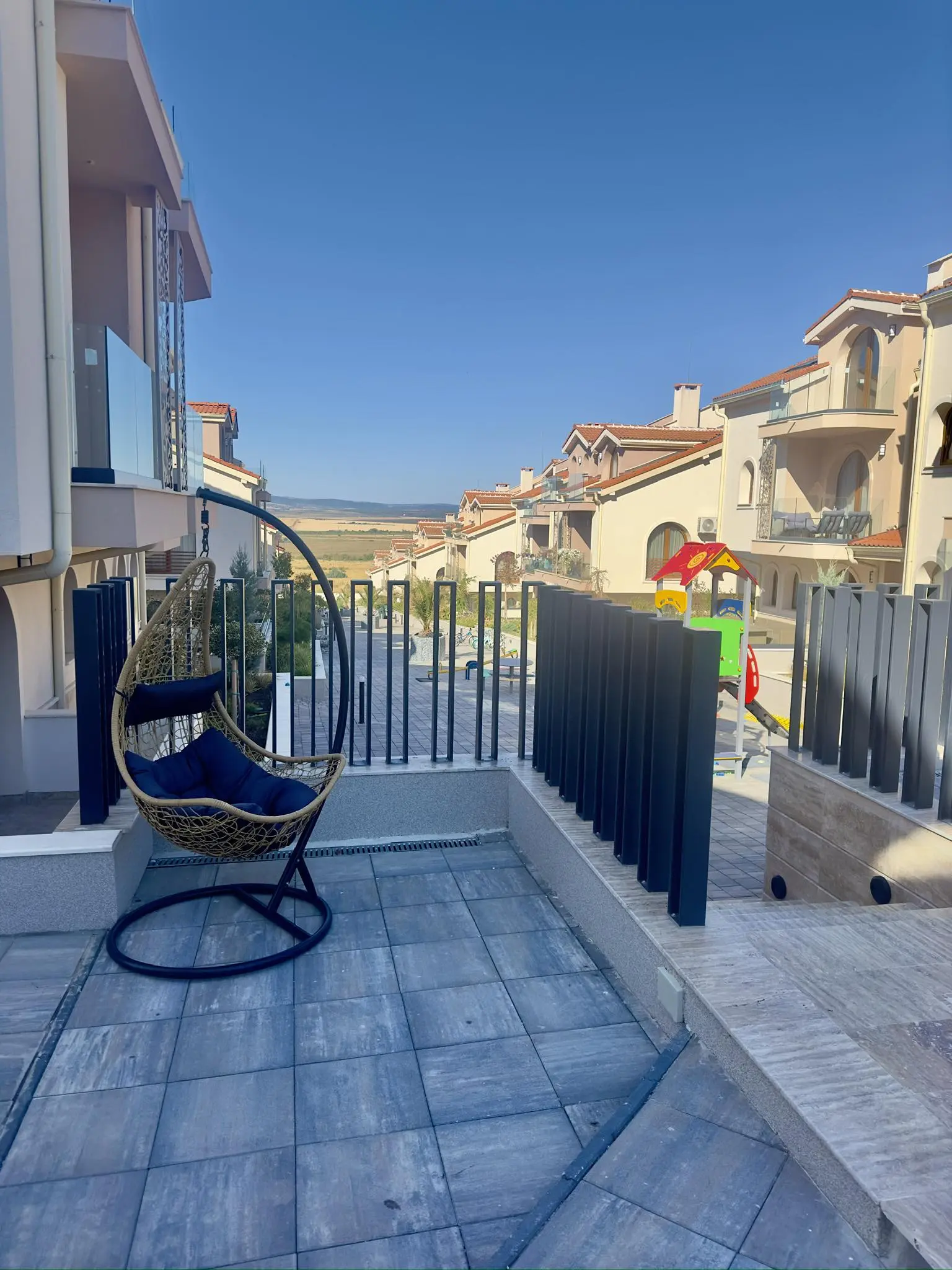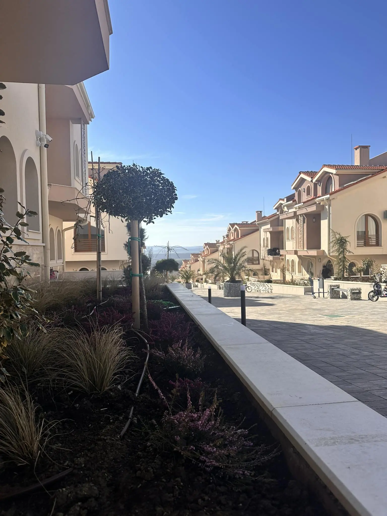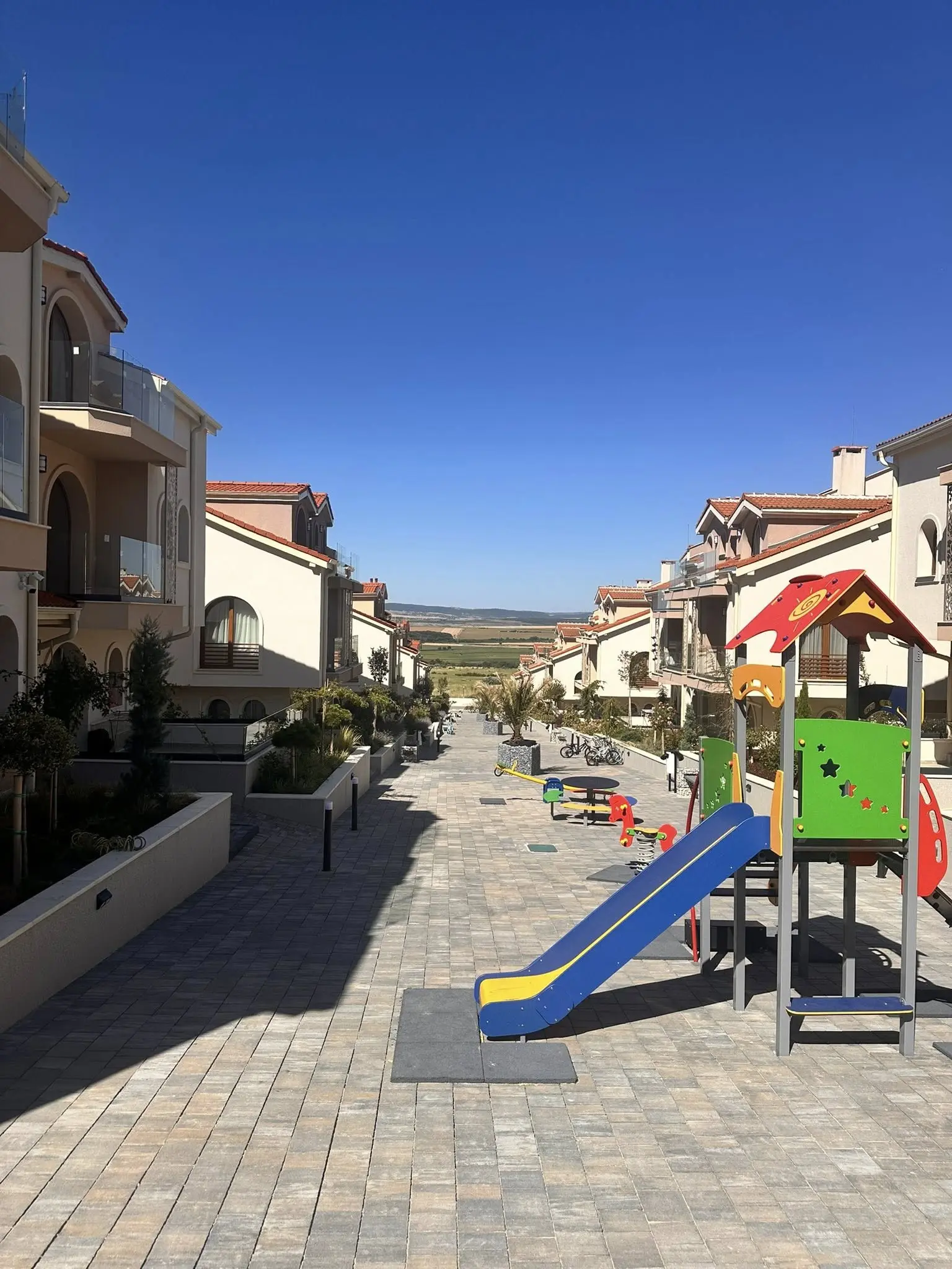 Grand Village — современный жилой комплекс закрытого типа, расположенный в живописной местности Сулуджана, между селом Кошарица и популярным курортом Солнечный Берег. Проект создан для тех, кто ценит тишину, экологически чистый воздух и близость к морю — всего 5 минут езды до пляжей Солнечного Берега и 2,7 км до побережья. Комплекс введён в эксплуатацию в 2024 году и имеет Акт 16.