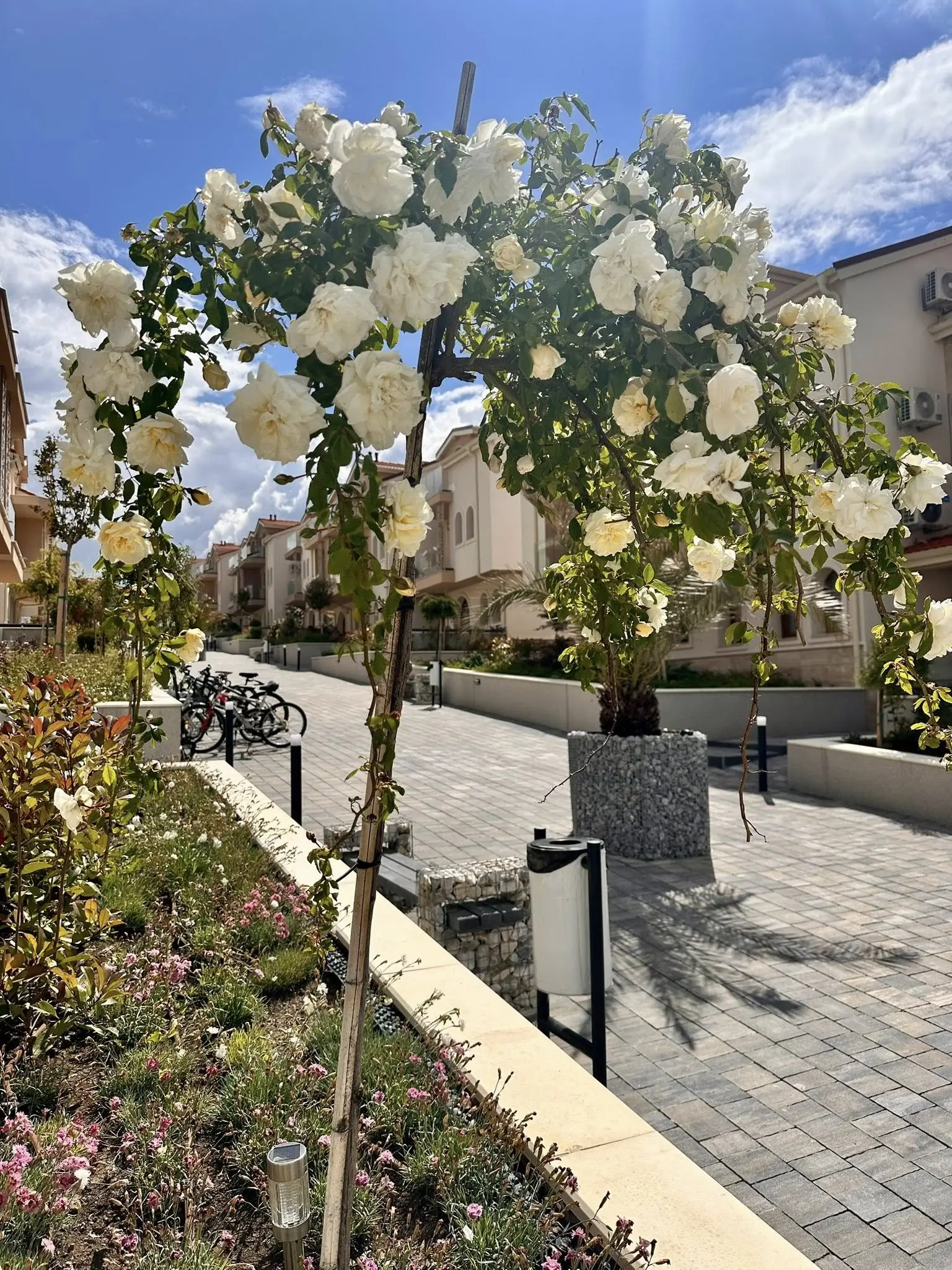 Проект включает 12 трёхэтажных жилых зданий, расположенных в два ряда, выполненных в едином архитектурном стиле, что создаёт гармоничное и уютное пространство. Апартаменты отличаются простором, светом и панорамными окнами, а многие из них имеют большие террасы с красивыми видами на горы и зелёные окрестности.