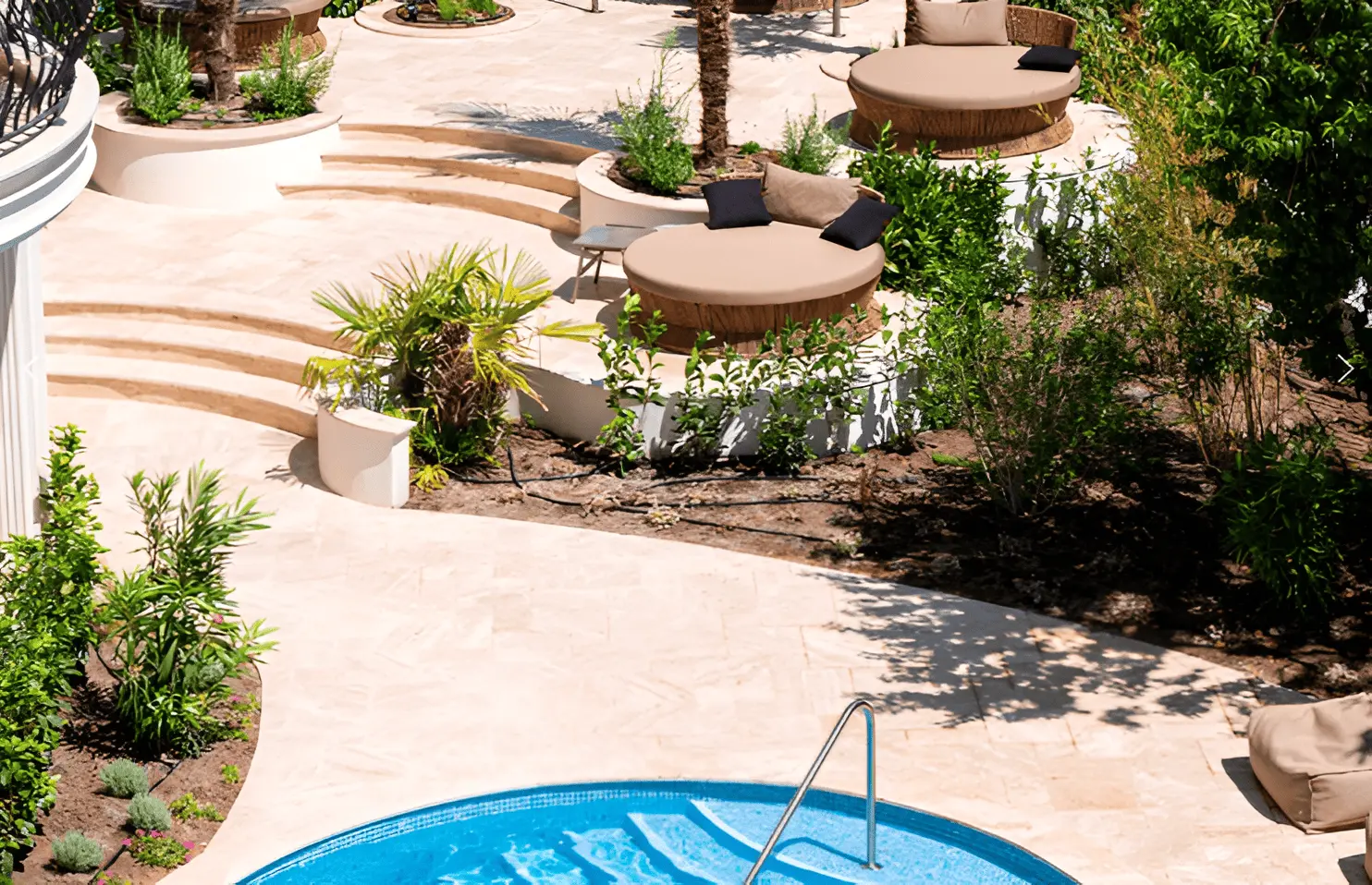 Ухоженные сады с пальмами, тенистыми аллеями и беседками; парковая дорожка для прогулок и пробежек.