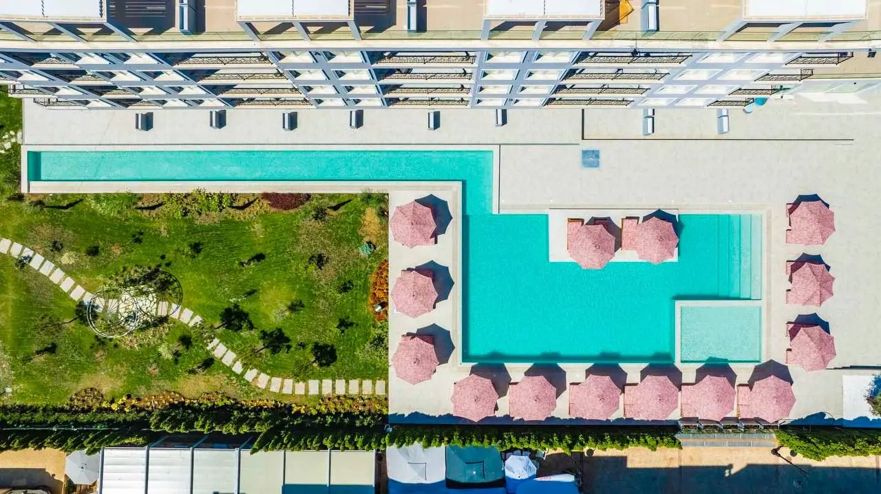 Проект разработан с акцентом на эстетику, приватность и высокий уровень комфорта. Здание выполнено в современном стиле и окружено садами с декоративными деревьями, цветущими кустарниками и уютными зонами отдыха. Центральным элементом территории станет эффектное водное зеркало в стиле инфинити, а также основной дизайнерский бассейн с островом. Территория комплекса продумана как закрытое пространство для отдыха резидентов и гостей, с ограниченным доступом в отдельные зоны для владельцев апартаментов на первых этажах. Управляющая компания комплекса предлагает услуги по управлению арендой, уборке до и после заездов, а также сезонному обслуживанию апартаментов.