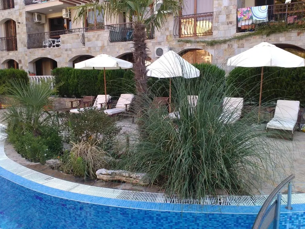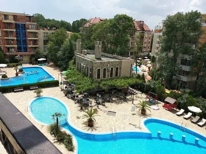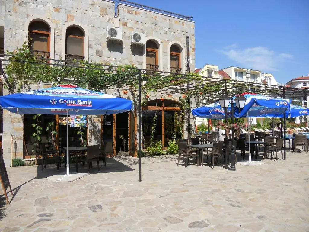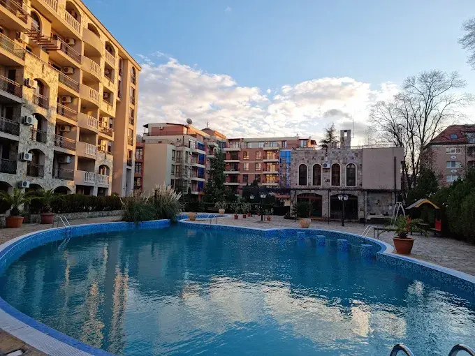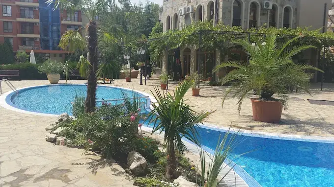 Внешняя инфраструктура: в пешей доступности магазины, супермаркеты Младость и Жанет, аптеки, обменные бюро, кафе и рестораны. В 400 метрах расположен знаменитый Action Aqua Park. Рядом находятся кофейни, фруктовые лавки, сувенирные магазины, а центр Солнечного Берега с барами, аттракционами, луна-парком и активной ночной жизнью — всего в нескольких минутах ходьбы.