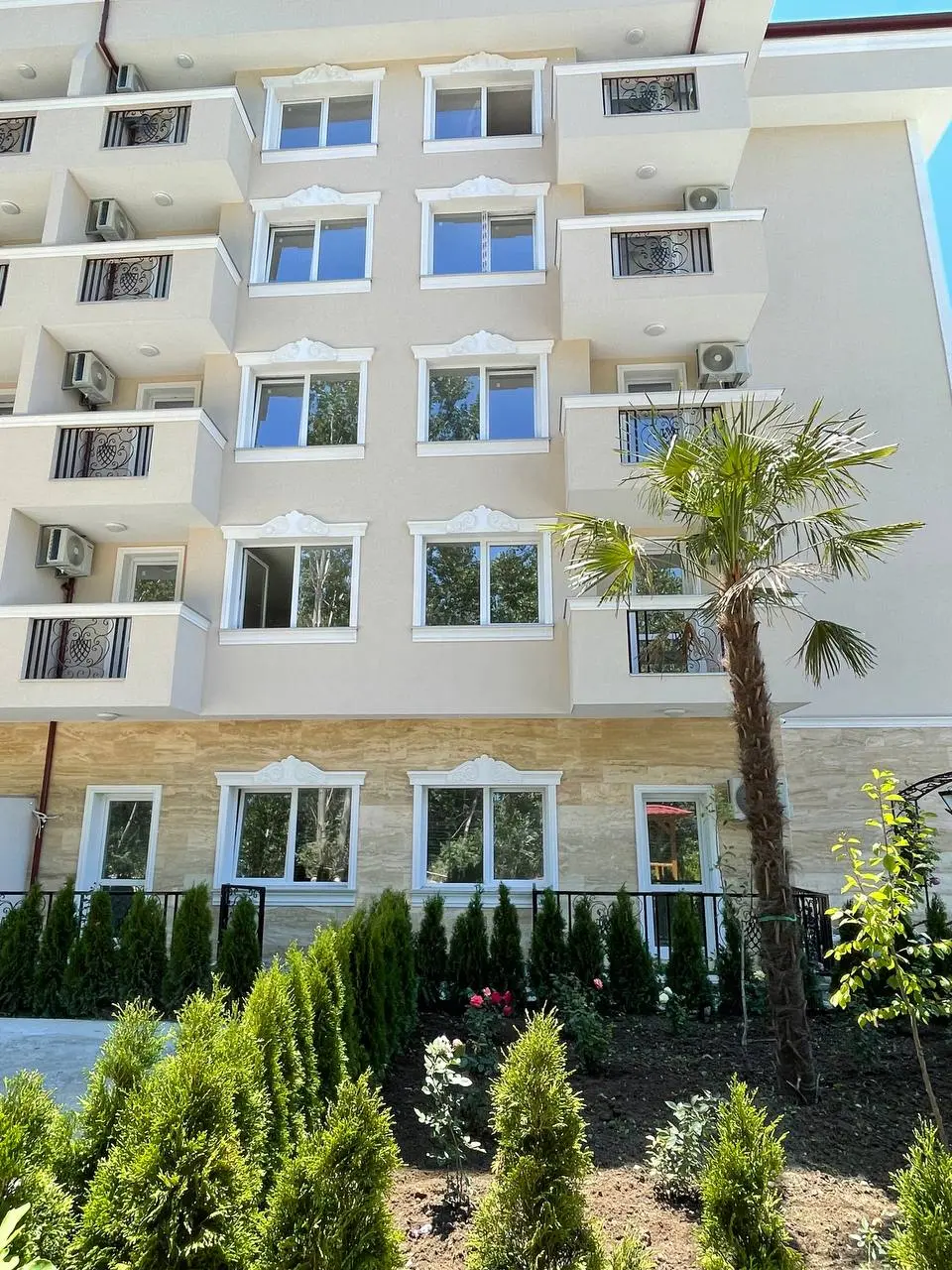 Комплекс закрытого типа с контролируемым доступом и собственной благоустроенной территорией. Здание полностью построено, введено в эксплуатацию и имеет Акт 16. При строительстве использовались качественные болгарские и австрийские материалы, что обеспечивает хорошую тепло- и шумоизоляцию и позволяет использовать апартаменты не только в летний сезон, но и круглый год.