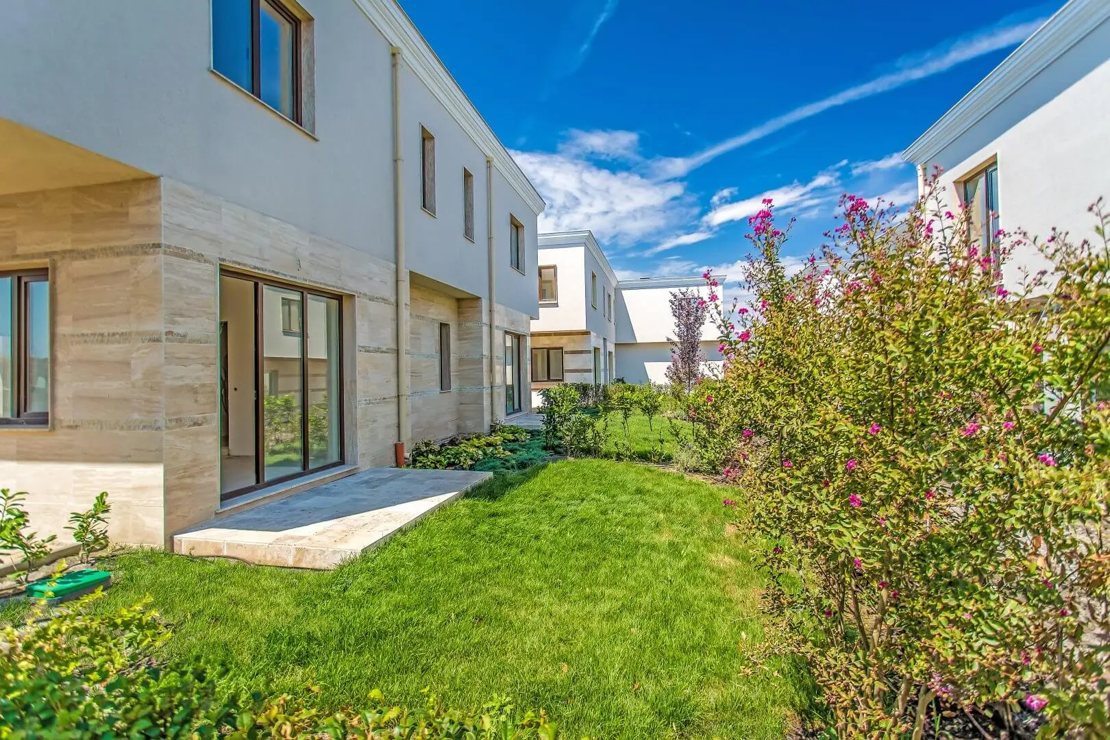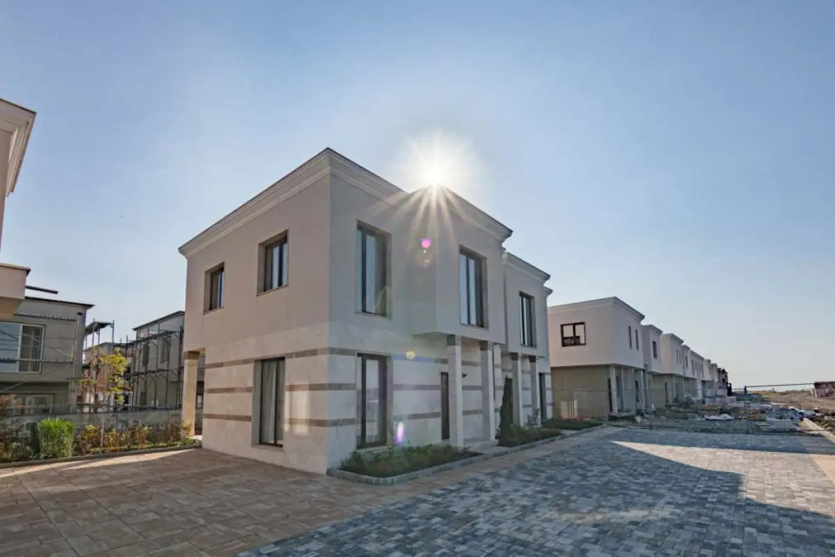 Комплекс возводится на участке площадью 25 742 кв.м и представляет собой ансамбль двухэтажных таунхаусов, расположенных линейно, с ориентацией север–юг. Такое решение обеспечивает хорошую инсоляцию, приватность и открытые виды. Уже построено 126 домов десяти различных типов — от компактных резиденций до просторных семейных домов с увеличенной площадью. Каждый таунхаус имеет собственный двор, зелёную зону и парковочное место.
