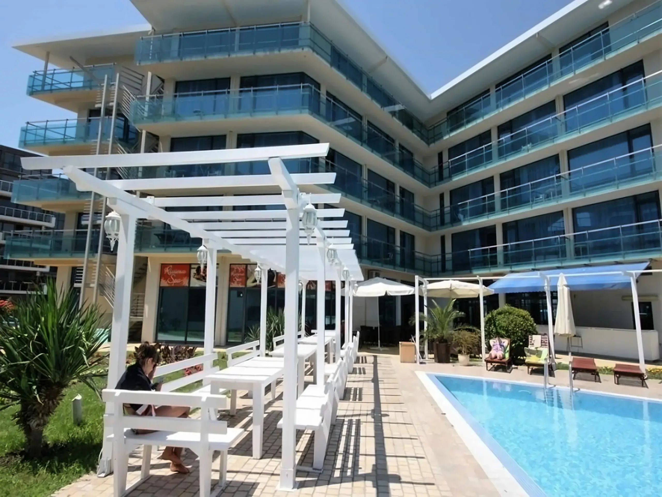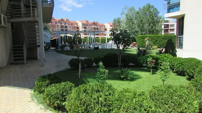 Это апарт-отель курортного типа с концепцией комфортного проживания и гостиничного сервиса. Формат комплекса подойдёт тем, кто хочет сочетать спокойную атмосферу проживания с доступом ко всей курортной инфраструктуре Солнечного Берега. На территории предусмотрены зоны отдыха, зелёные уголки, общественные пространства и сервисы, характерные для отельного формата, при этом апартаменты подходят как для личного пользования, так и для инвестиционных целей.