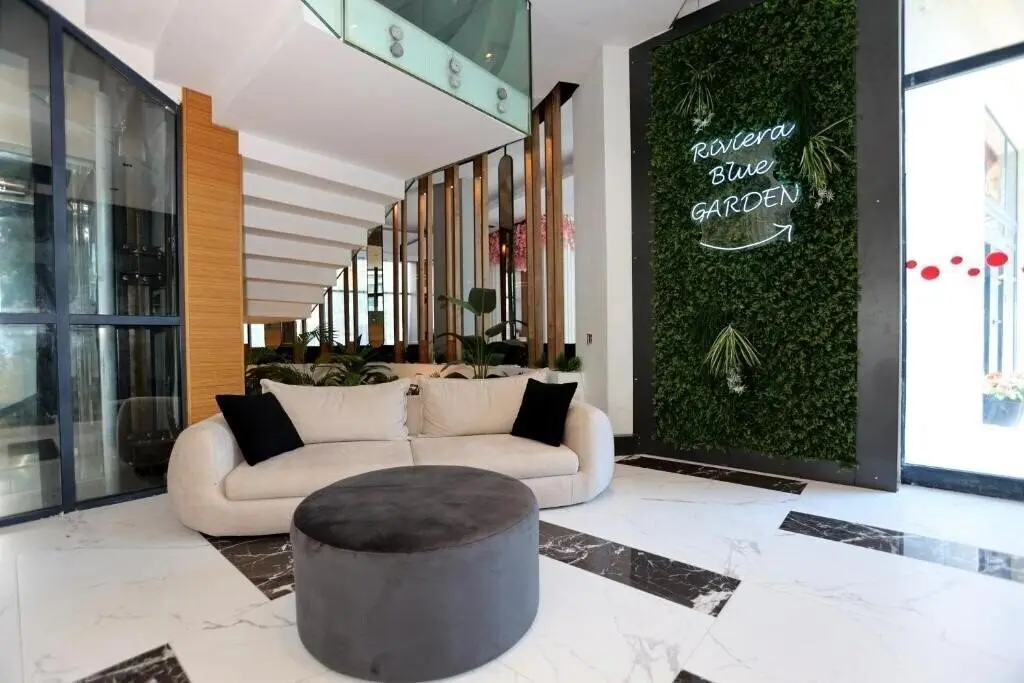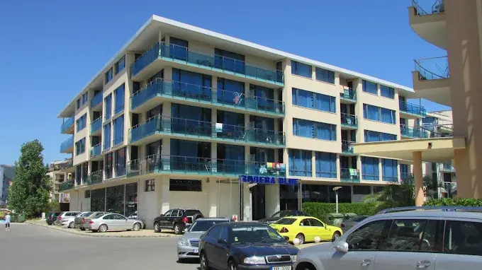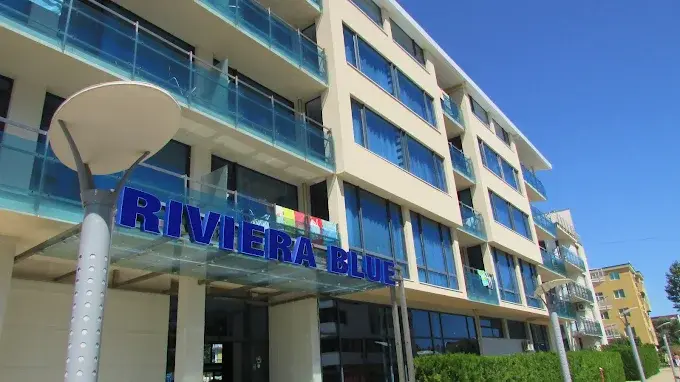 Riviera Blue — современный апарт-отель курортного формата, расположенный в северо-западной части Солнечного Берега, в удобной близости к центру курорта и пляжной линии. Комплекс состоит из нескольких корпусов — St. George, Eden, Riviera и Blue Pearl — и представляет собой новое капитальное здание с современной архитектурой и лифтами. До пляжа можно дойти пешком примерно за 10 минут, при этом в шаговой доступности находятся магазины, бары, рестораны и развлекательные заведения, что делает локацию удобной как для отдыха, так и для постоянного проживания. Комплекс введён в эксплуатацию и имеет Акт 16.