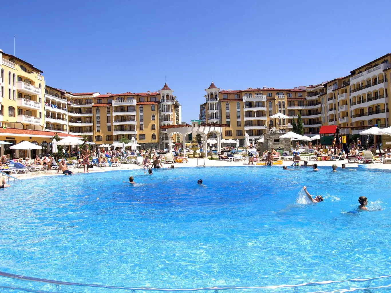 Royal Sun — современный жилой комплекс закрытого типа, расположенный в самом сердце курорта Солнечный Берег, всего в 350 метрах от просторного песчаного пляжа. Этот апарт-отель, созданный как оазис для семейного отдыха, сочетает в себе стиль, комфорт и безопасность. Благодаря своей архитектуре и благоустроенной территории площадью более 10 000 м², комплекс напоминает курортный город в миниатюре, где есть всё для полноценного отдыха у моря.