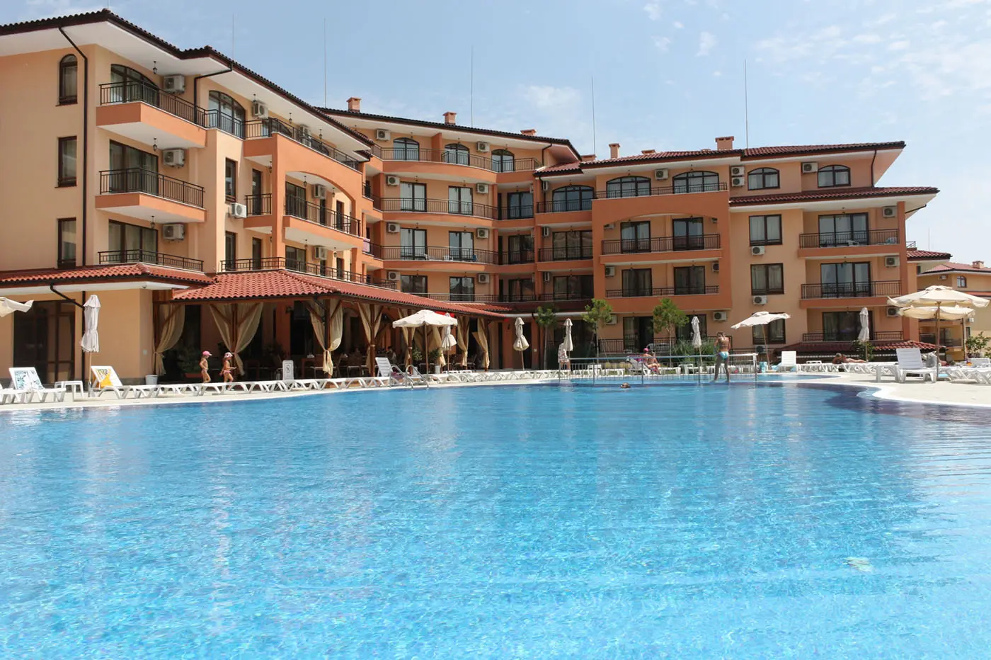 Два больших бассейна: один из них с баром; в каждом предусмотрены детские зоны для безопасного отдыха малышей.