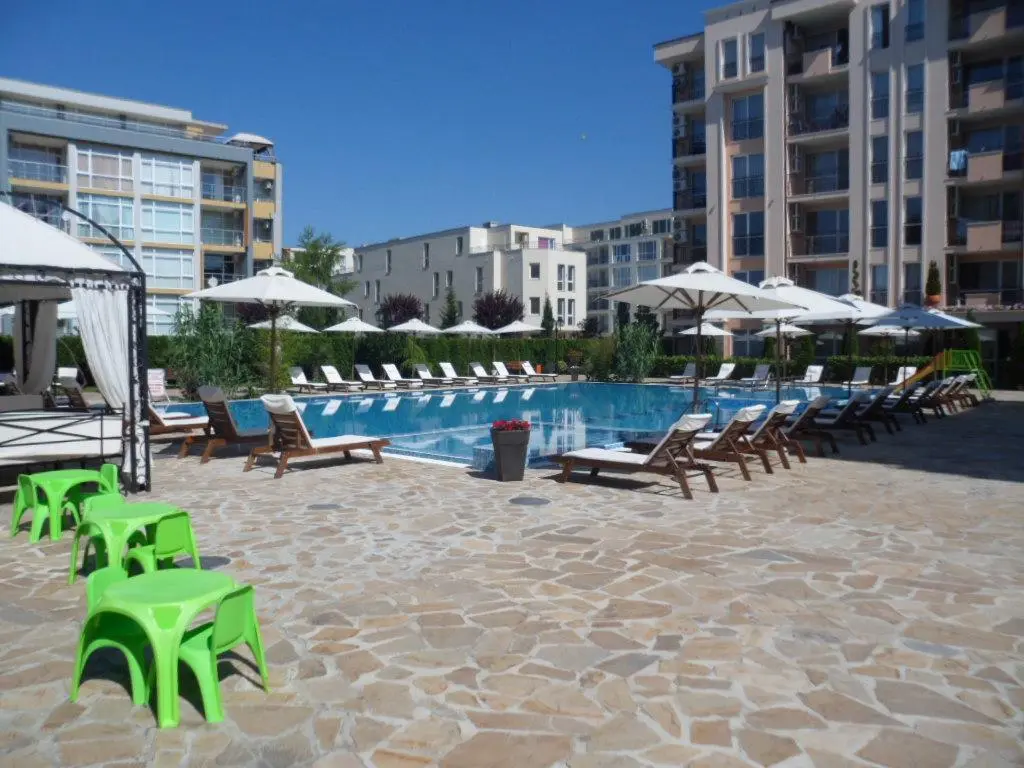 Солнечный Берег — популярный болгарский курорт на побережье Чёрного моря, известный своими широкими песчаными пляжами, чистым морем и активной ночной жизнью. Здесь сосредоточены рестораны, бары, ночные клубы, магазины и развлекательные центры. В 1,5 км от комплекса находится древний город Несебр, занесённый в список всемирного наследия ЮНЕСКО, который привлекает туристов своей богатой историей и уникальной архитектурой. А международный аэропорт Бургаса расположен всего в 35 км, что делает дорогу к комплексу максимально удобной.