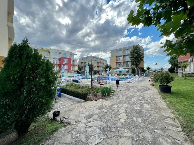 Sunny Day 5 — это закрытый жилой комплекс, расположенный в спокойной местности примерно в 4 км от популярного курорта Солнечный Берег. Комплекс занимает просторную территорию площадью более 10 000 м² и состоит из восьми четырехэтажных зданий. В них расположено около 300 апартаментов с различной планировкой и площадью — от студий до двух- и трехкомнатных квартир. Комплекс привлекает сочетанием спокойной атмосферы, зеленой территории и удобной близости к морскому курорту с развитой инфраструктурой и развлечениями.
