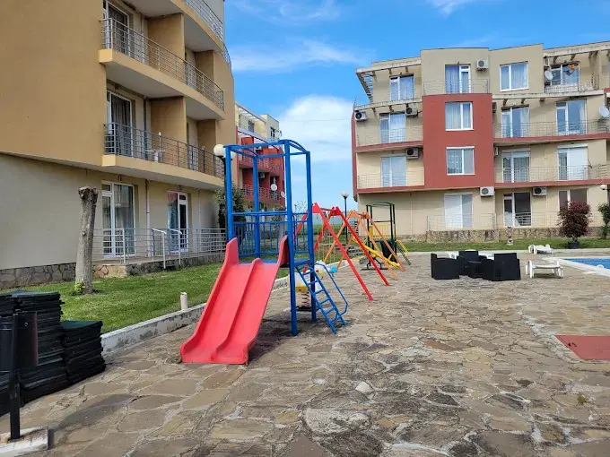 Комплекс расположен в тихой части курорта, что позволяет наслаждаться спокойствием вдали от шума туристических зон. В то же время всего в нескольких километрах находится вся инфраструктура Солнечного Берега: супермаркеты, рестораны, кафе, ночные клубы, аквапарки, магазины, аптеки и развлекательные центры. Поблизости расположены детские сады, школы и рынки со свежими овощами и фруктами. На пляже курорта доступны водные виды спорта и разнообразные развлечения.