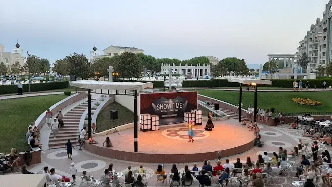 На территории комплекса расположены многочисленные зоны отдыха, прогулочные аллеи, фонтаны, декоративные сады и зеленые насаждения, создающие уютную и расслабляющую атмосферу. Особое внимание уделено досугу — как для взрослых, так и для детей.