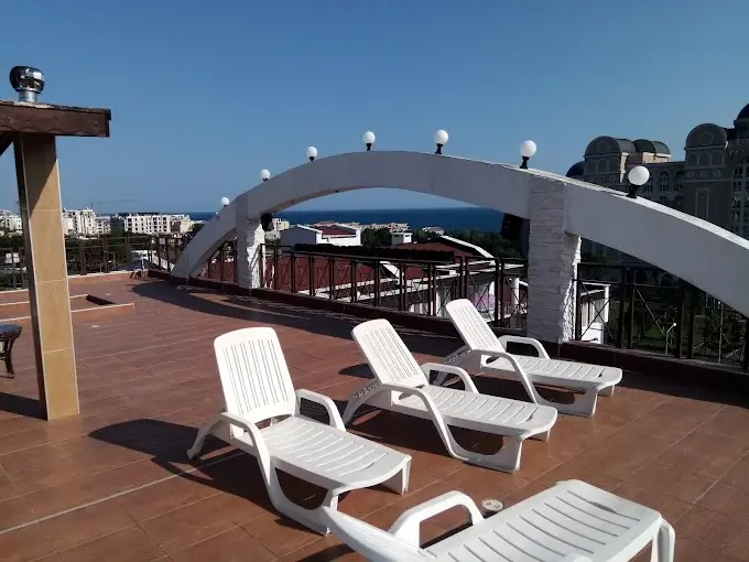 Комплекс представляет собой стильное здание в форме «Х», состоящее из пяти корпусов и трёх отдельных входов с лифтами. Общая площадь территории превышает 2800 м². Среди апартаментов — студии, двух- и трёхкомнатные квартиры разного метража и планировок. Всего в комплексе 74 апартамента с видами на море, горы или бассейн. Здание построено в 2006 году и введено в эксплуатацию — Акт 16.