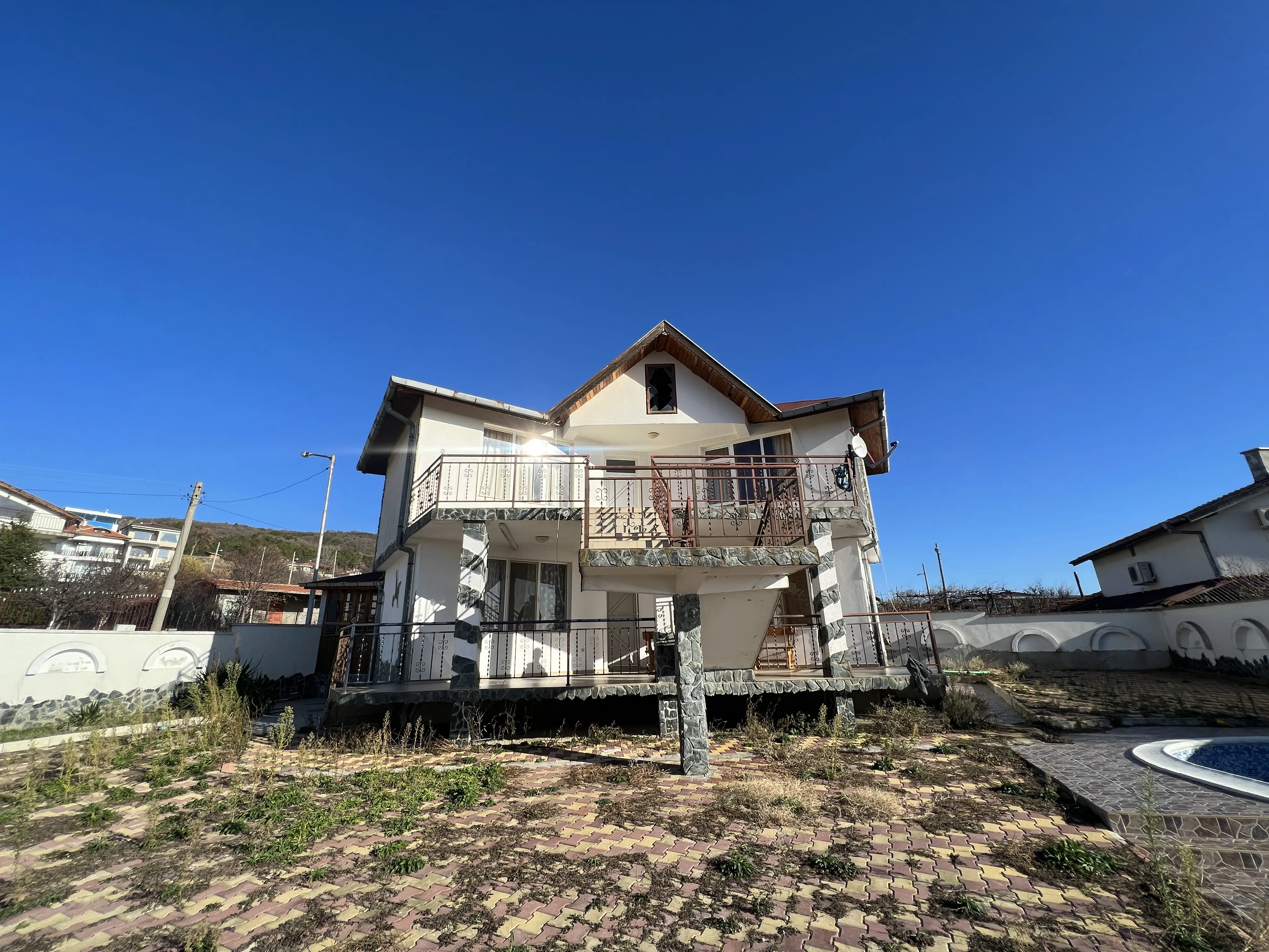 На продажу выставлен уютный дом площадью 130 м² в одном из самых спокойных и зеленых районов Святого Власа — Инцараки. Из окон открывается впечатляющая панорама Черного моря, а расстояние до пляжа составляет около 20 минут пешком. Дом полностью введён в эксплуатацию и имеет Акт 16. Недвижимость распределена на два этажа с удобной планировкой. В доме предусмотрены три спальни, просторная гостиная с камином, совмещённая с кухней, три санузла и две террасы с живописным видом. Чердак можно использовать как дополнительное помещение для хранения или оборудовать под кабинет или зону отдыха.