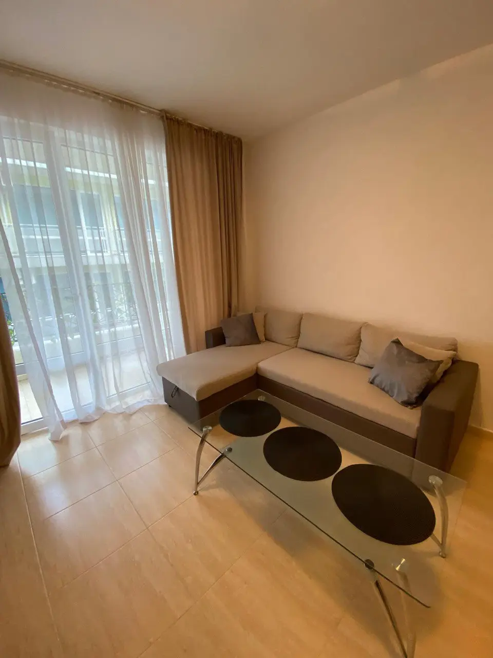 Продаётся уютная и просторная двухкомнатная квартира в жилом комплексе Azzuro на курорте Солнечный Берег. Апартамент расположен на 3 этаже, общая площадь составляет 60 м². Квартира находится всего в 400 метрах от моря, продаётся по цене 69 000 евро. Годовая такса поддержки — 275 евро. Планировка удобная и функциональная, подходит как для отдыха, так и для сдачи в аренду.