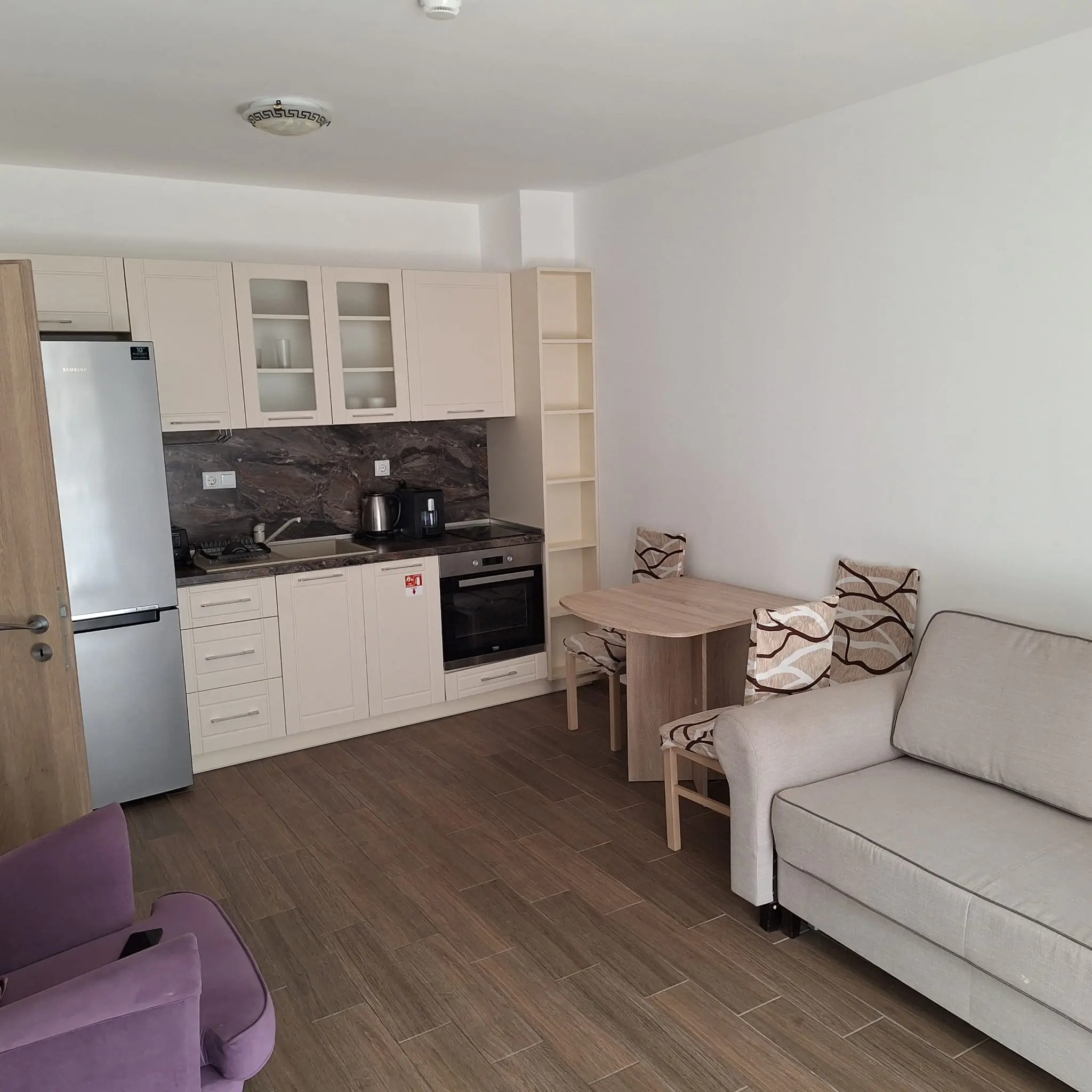 Квартира отличается продуманной планировкой: просторная гостиная зона гармонично совмещена с кухней, создавая единое уютное пространство для семейного времяпрепровождения. Отдельная спальня обеспечивает приватность и спокойствие, а изящный балкон открывает приятный вид на внутреннюю часть комплекса, позволяя наслаждаться свежим воздухом в любое время дня.