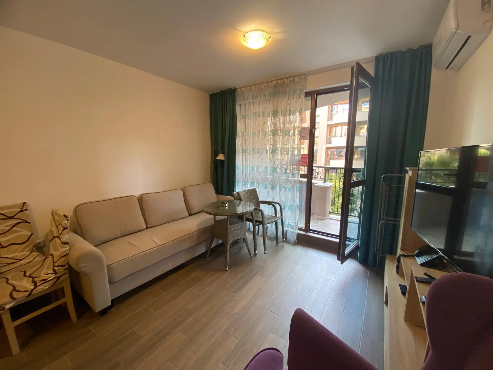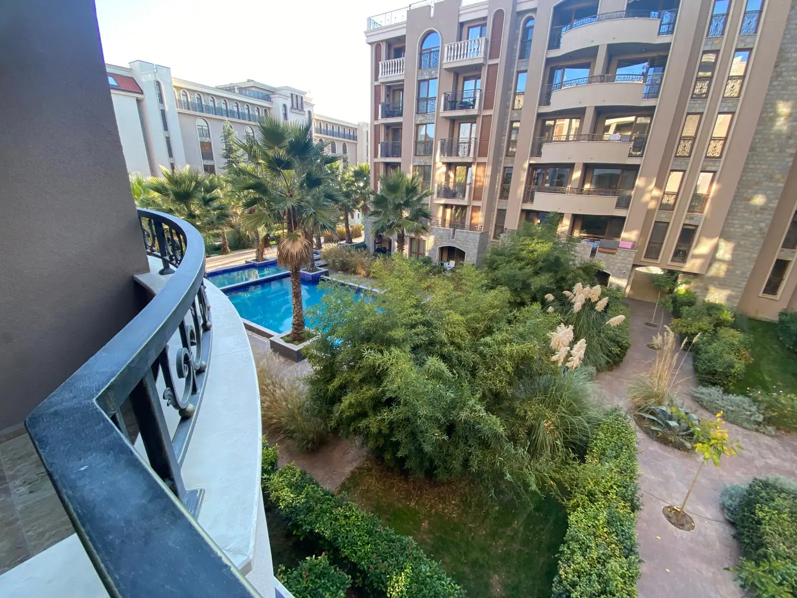 Апартамент включает гостиную с кухонной зоной, отдельную спальню, ванную комнату и балкон с приятным видом на бассейн. Светлые помещения, качественная отделка и готовность к заселению делают квартиру отличным решением как для личного пользования, так и для сдачи в аренду.