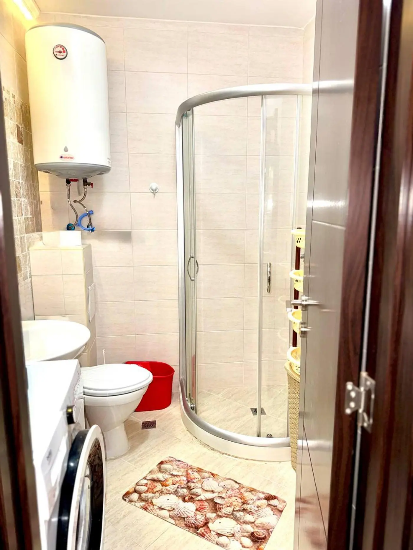 Здание введено в эксплуатацию и имеет Акт 16. Расстояние до песчаного пляжа составляет около 500 метров, дорога пешком занимает примерно 10–12 минут. Стоимость квартиры — 119 000 €, ежегодная такса обслуживания — 17,5 €/м².
