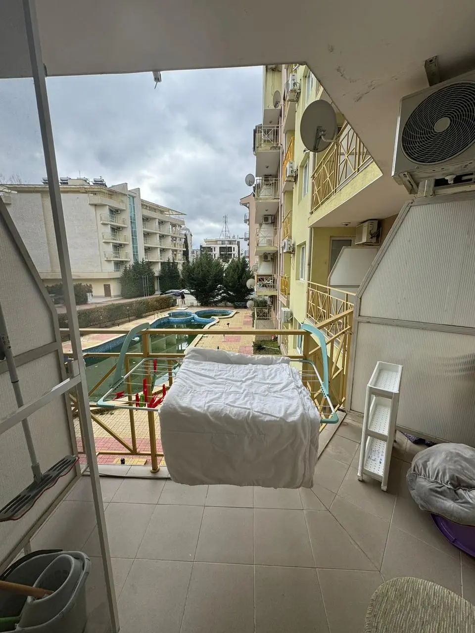 Предлагается к продаже светлая и уютная двухкомнатная квартира площадью 58 м², расположенная на 2 этаже жилого комплекса Diamond Sky в районе Чайка. Квартира после свежего ремонта (около 1 года), полностью укомплектована новой мебелью и бытовой техникой. Имеет два балкона с видом на бассейн и улицу. До моря — около 500 метров. Наличие Акта 16 гарантирует юридическую чистоту сделки. Такса поддержки — всего 9 €/м² в год.