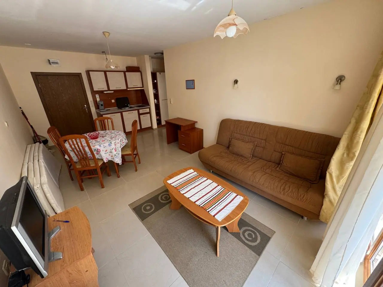 Планировка функциональная и удобная: коридор, просторная гостиная с кухонной зоной, отдельная спальня, ванная комната с душевой кабиной и балкон. Квартира светлая, ухоженная, подходит как для сезонного отдыха, так и для круглогодичного проживания.