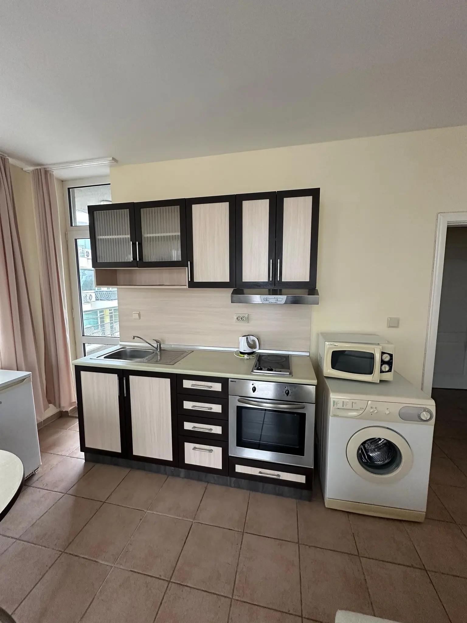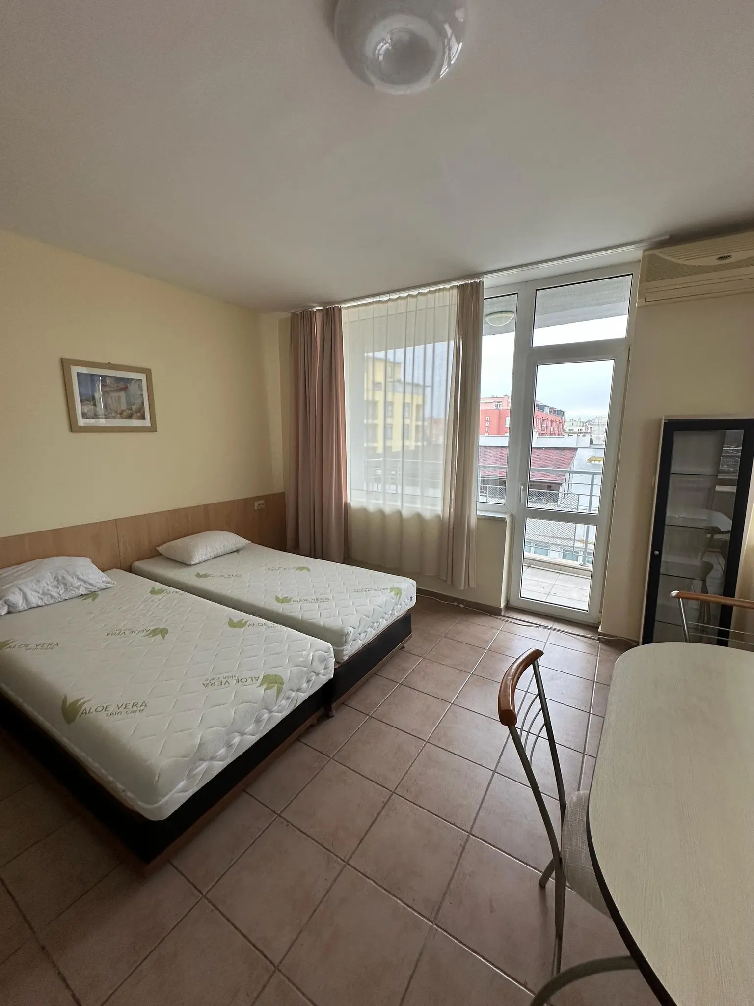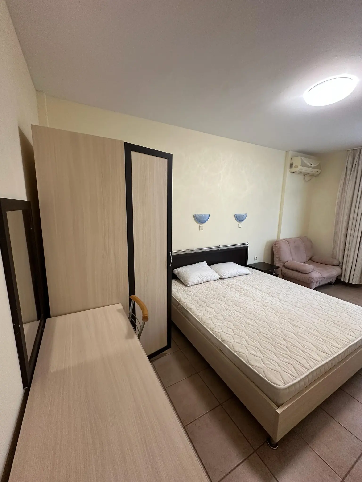 Предлагается к продаже двухкомнатная квартира в комплексе Favorit на курорте Солнечный Берег. Апартамент площадью 65 м² расположен на 4 этаже и предлагается по цене €85 000. Квартира включает гостиную с кухонной зоной, отдельную спальню, ванную комнату и две террасы с видом во внутренний двор комплекса и море. Жилье полностью меблировано и оснащено техникой, готово к проживанию или сдаче в аренду. Годовая такса обслуживания составляет €400, что делает содержание доступным. До моря 250 м, акт 16. Квартира отличается удобной планировкой и подойдет как для отдыха, так и для инвестиций.