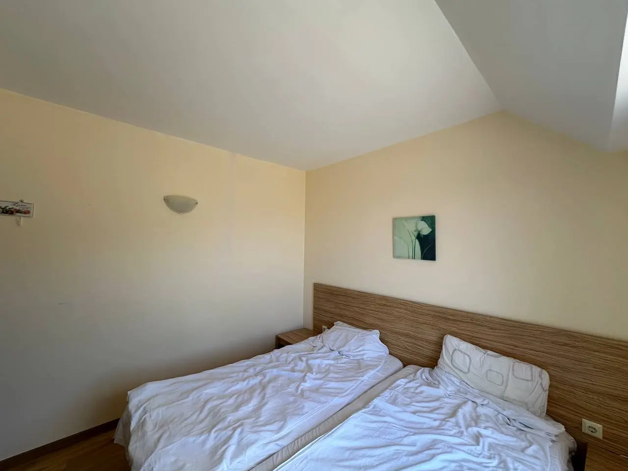 Предлагается к продаже светлая и ухоженная двухкомнатная квартира в современном жилом комплексе Macon Residence, расположенном в курортном городе Святой Влас. Цена – 81 000 €, общая площадь 68 кв. м. Квартира находится на 5 этаже. Такса поддержки составляет 12 € за кв. м в год. Расстояние до моря — около 600 метров, дорога до пляжа занимает примерно 10 минут пешком.
