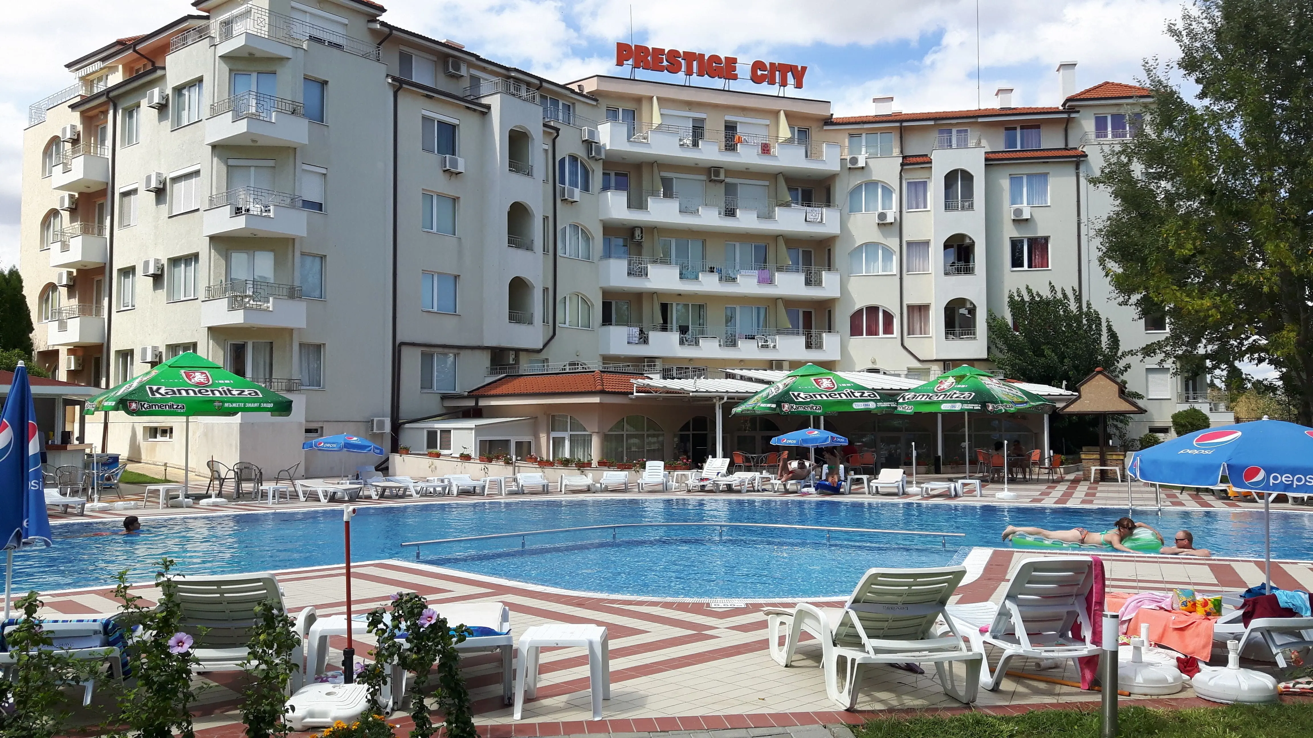 Курортный комплекс Prestige City расположен в спокойной части Солнечного Берега, на комфортном расстоянии от шумных дискотек, но в пешей доступности от магазинов, кафе, ресторанов и основных развлечений курорта. Территория зелёная и ухоженная, с приятной курортной атмосферой и зоной для отдыха у бассейна.