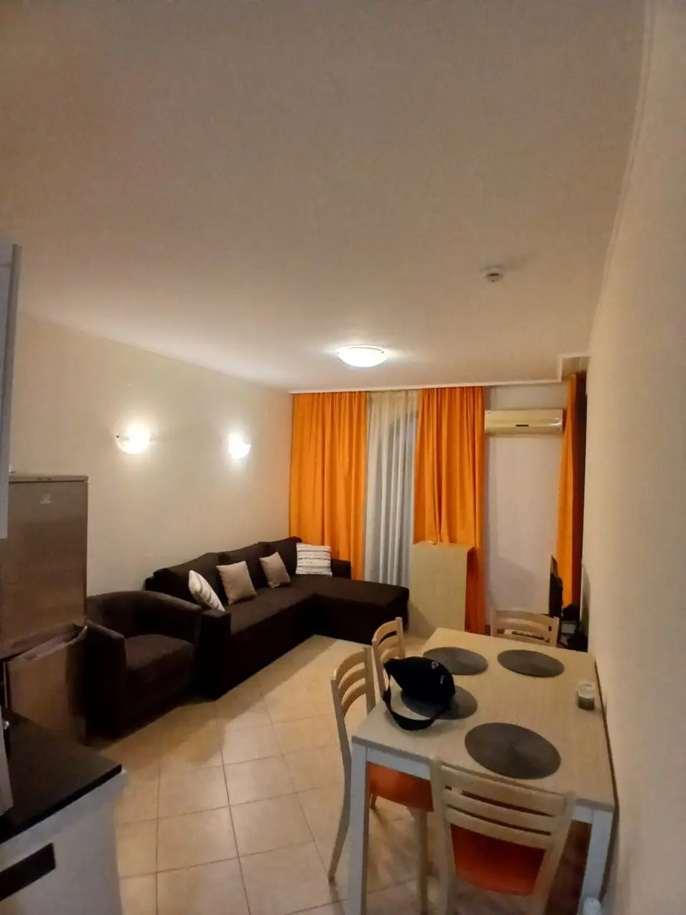Продаётся уютная двухкомнатная квартира площадью 55 м², расположенная на 3 этаже в престижном жилом комплексе Royal Sun. Апартамент полностью меблирован и оборудован бытовой техникой, готов к немедленному проживанию или сдаче в аренду. Планировка включает светлую гостиную с кухонной зоной, отдельную спальню, современную ванную комнату и террасу. Расстояние до моря — 350 м. Такса поддержки — 15 € / м² в год.