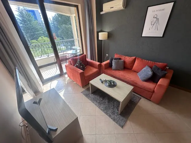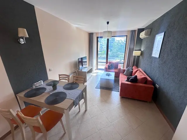 Двухкомнатная квартира в комплексе Royal Sun — это просторный апартамент площадью 67 м², расположенный на 3 этаже, предлагается по цене €86 000 с годовой таксой поддержки €1 461. Квартира с удобной планировкой включает светлую гостиную с кухонной зоной, отдельную спальню, ванную комнату и балкон с приятным видом на сад комплекса. Апартамент полностью готов к проживанию, имеет Акт 16 и находится всего в 350 метрах от моря, что делает его отличным вариантом как для отдыха, так и для инвестиций с целью аренды.