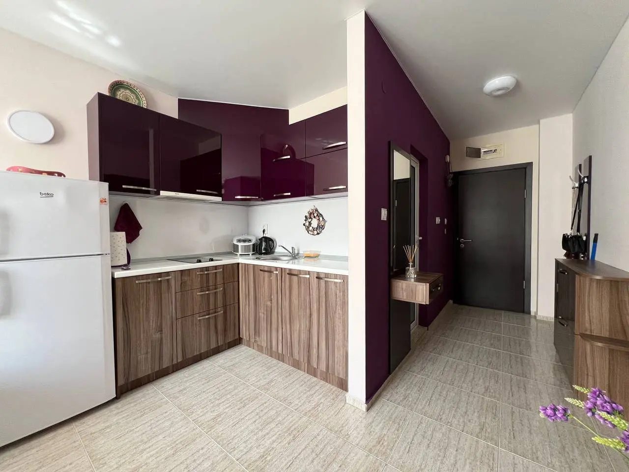 Комплекс находится в тихом и зелёном районе курорта, всего в нескольких минутах ходьбы от пляжа. В пешей доступности расположены супермаркеты, кафе, рестораны и остановки общественного транспорта. Рядом есть прогулочные зоны и парк, а до центра Солнечного Берега можно дойти за 10–15 минут, что делает локацию удобной для жизни и отдыха.