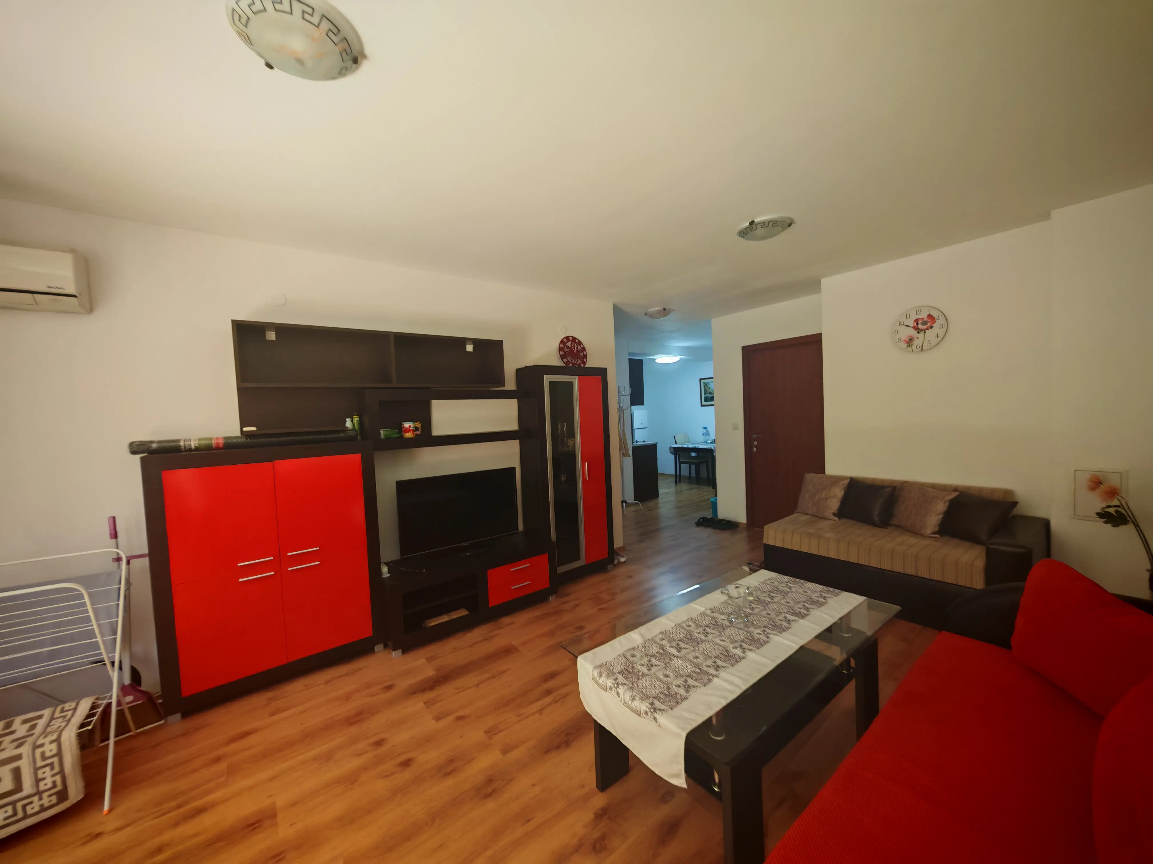 Продаётся квартира на партере в популярном закрытом комплексе Siana 5, всего в 300–350 м от пляжа Святого Власа. По документам площадь указана как 66 м², фактически же жилая площадь ощущается значительно больше — более 70 м² за счёт полноценных комнат и благоустроенного прилегающего двора. Жильё идеально подходит для круглогодичного проживания и как инструмент для сдачи в аренду благодаря удобной локации и развитой инфраструктуре.