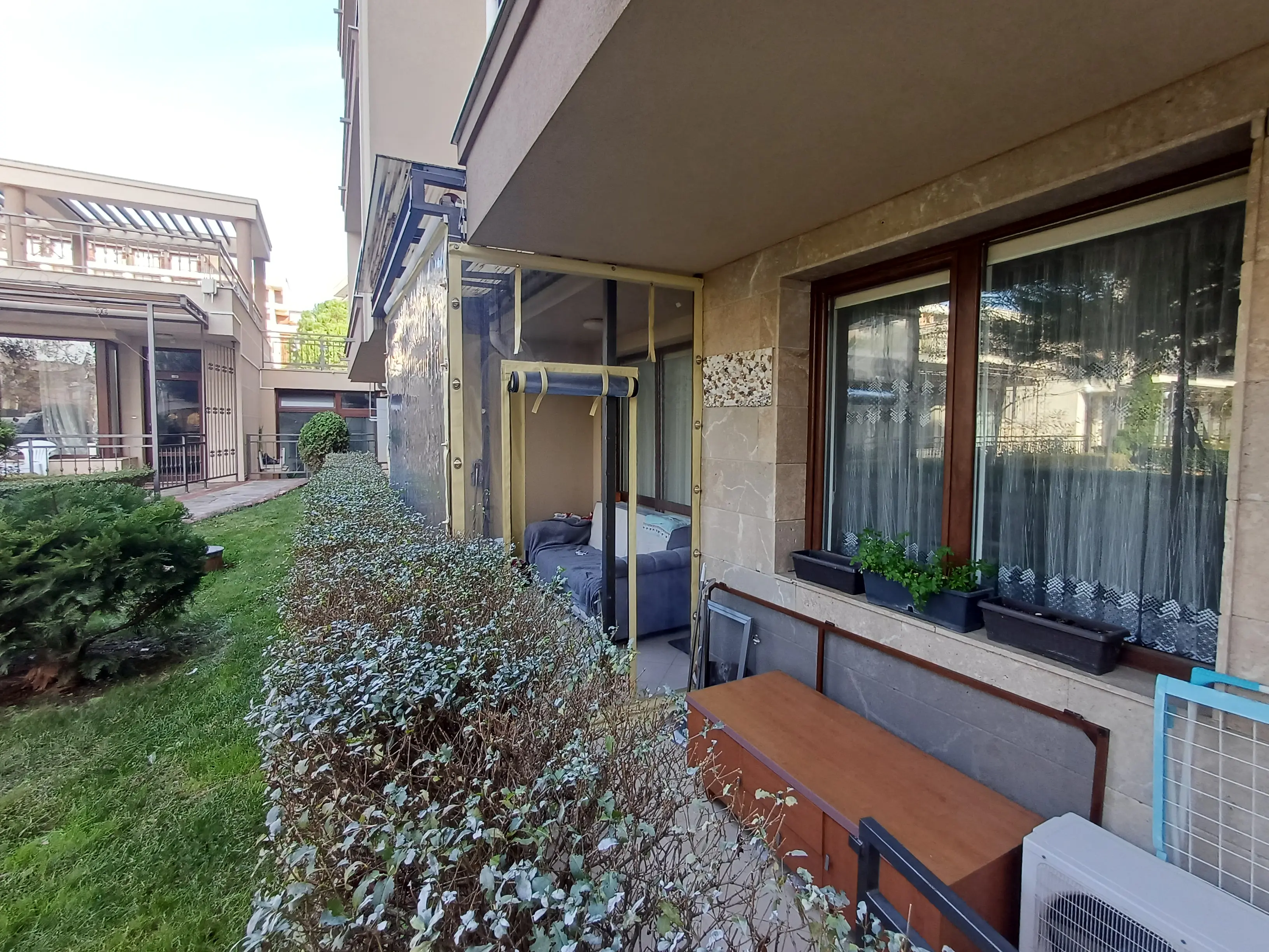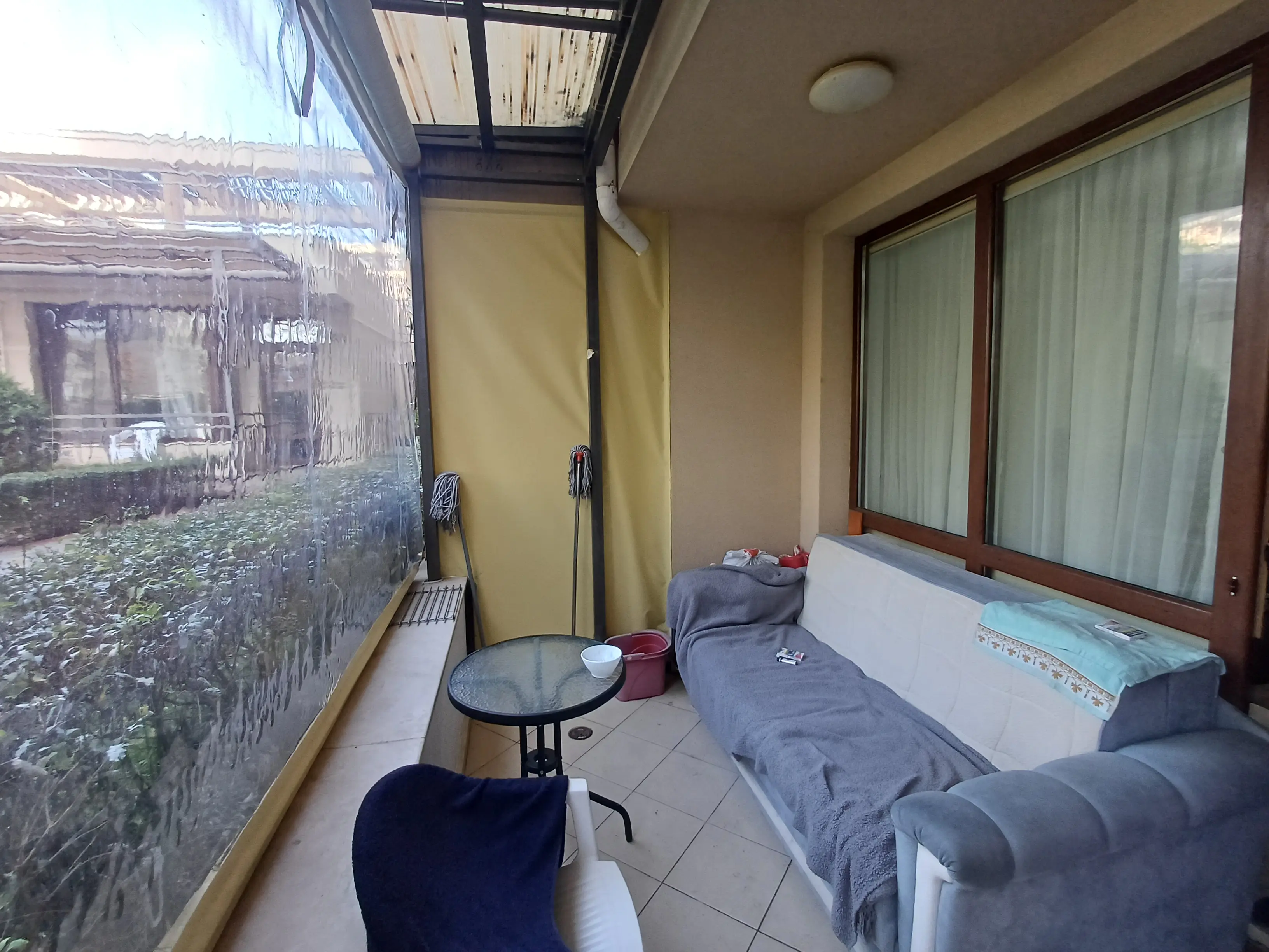 Продаётся уютная двухкомнатная квартира в элегантном комплексе Sorrento Sole Mare, расположенном в тихом и благоустроенном районе Святого Власа. Апартамент находится на первом (партерном) этаже четырёхэтажного здания, имеет общую площадь 52 м², с приятным видом на зелёную лужайку и внутреннюю территорию комплекса. До моря и песчаного пляжа порядка 200–250 м. Здание введено в эксплуатацию, есть Акт 16. Такса поддержки составляет 12 €.