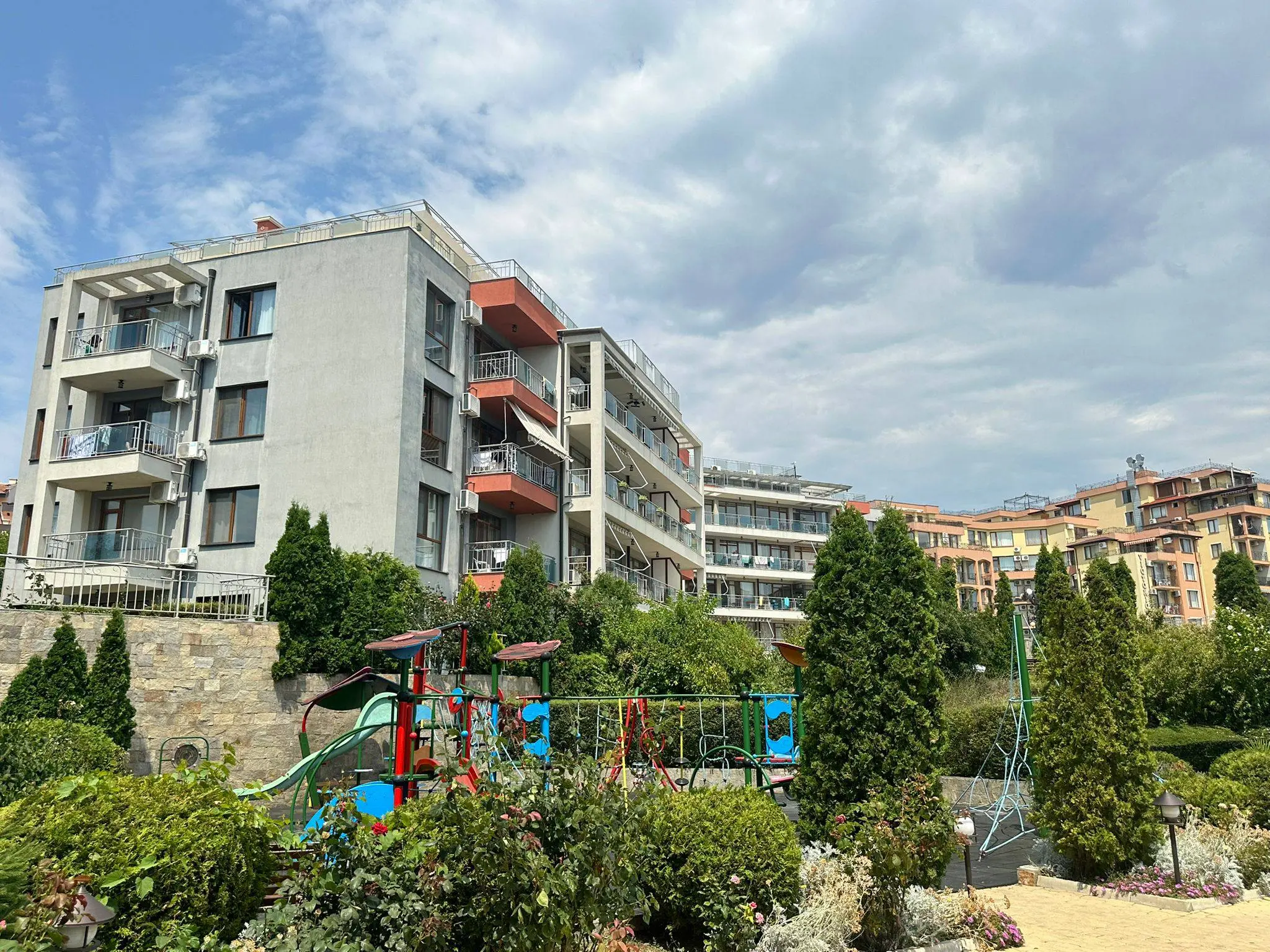 Sun Wave — современный жилой комплекс премиум-класса на первой линии в Святом Власе, отличающийся архитектурой в средиземноморском стиле и ухоженной зелёной территорией. Комплекс ориентирован на комфортное проживание и отдых у моря, предлагая спокойную атмосферу и высокий уровень обслуживания.