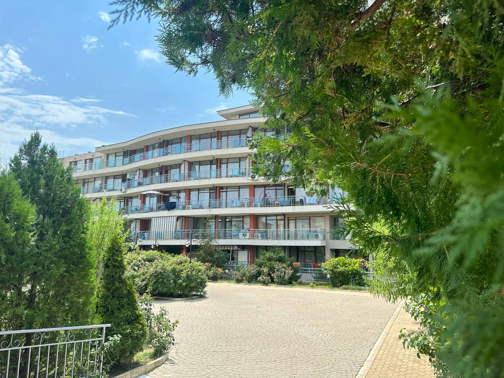 Комплекс расположен в Святом Власе — одном из самых комфортных курортов побережья, всего в 50 метрах от пляжа. В пешей доступности находятся магазины, аптеки, рестораны и остановки транспорта. Рядом расположен яхт-клуб Марина Диневи, а до центра Солнечного Берега и старого города Несебр можно быстро добраться на транспорте. Локация сочетает тишину, чистый воздух и близость к активной курортной жизни.