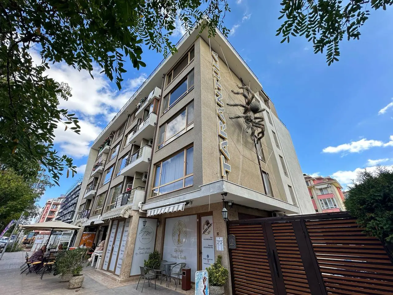 Предлагается стильная двухкомнатная квартира площадью 64 м², расположенная на 6 этаже современного жилого комплекса Tarantula на Солнечном Береге. Апартамент полностью меблирован, светлый и уютный, с приятным видом на благоустроенную улицу курорта. Внутреннее пространство продумано до мелочей: просторная гостиная с панорамными окнами ведёт на большой балкон с навесом, идеально подходящий для отдыха на свежем воздухе. Отдельная спальня оснащена большой двуспальной кроватью и вместительным шкафом-купе. Санузел выполнен в тёплых тонах и оборудован душевой кабиной и бойлером. Кухонная зона отсутствует, однако все коммуникации и выводы под установку кухни уже подготовлены, что позволит будущему владельцу оформить её по своему вкусу. В прихожей расположен встроенный шкаф-ниша с выводами под стиральную машину. Такса поддержки: 450 € / год.