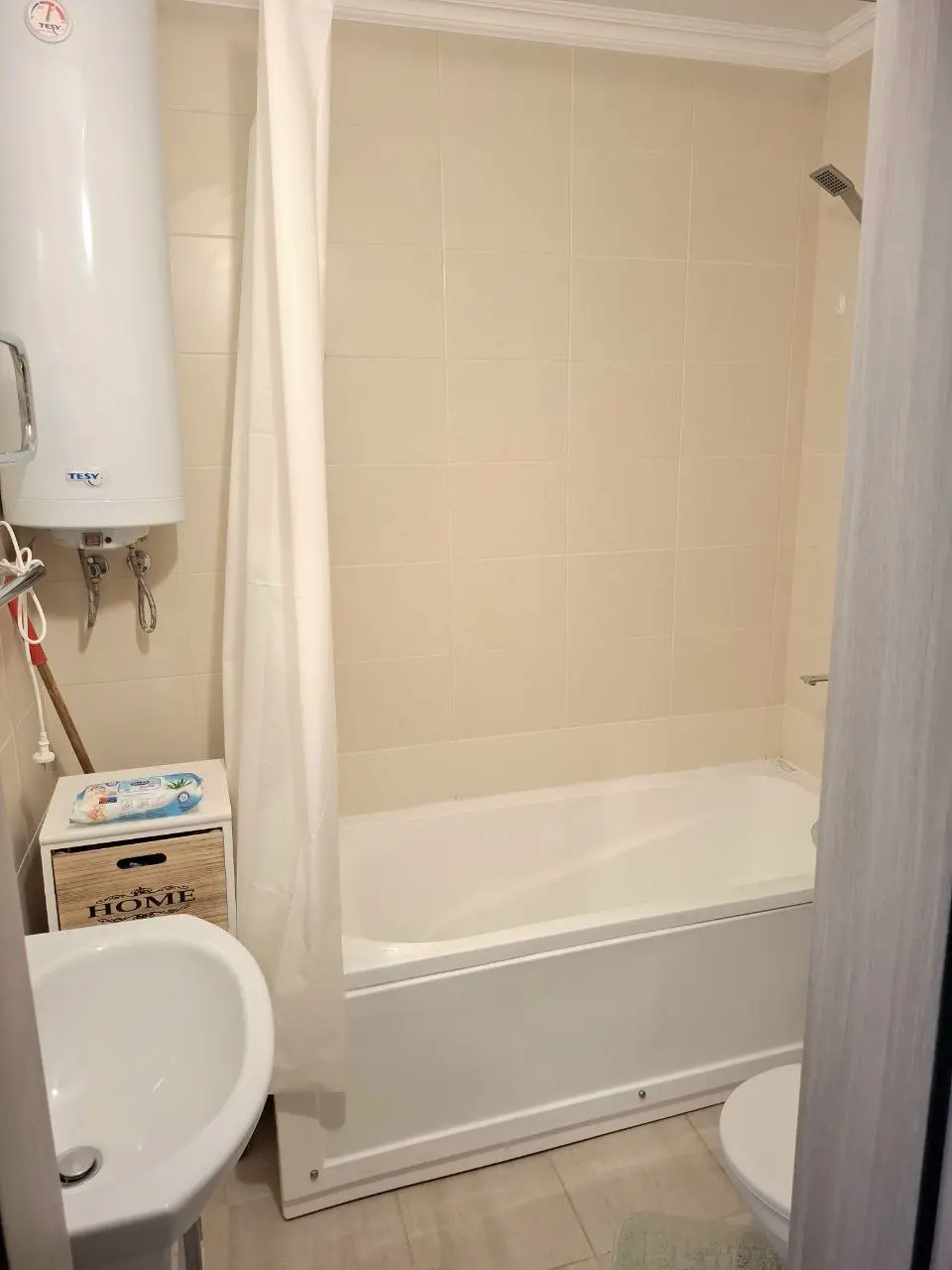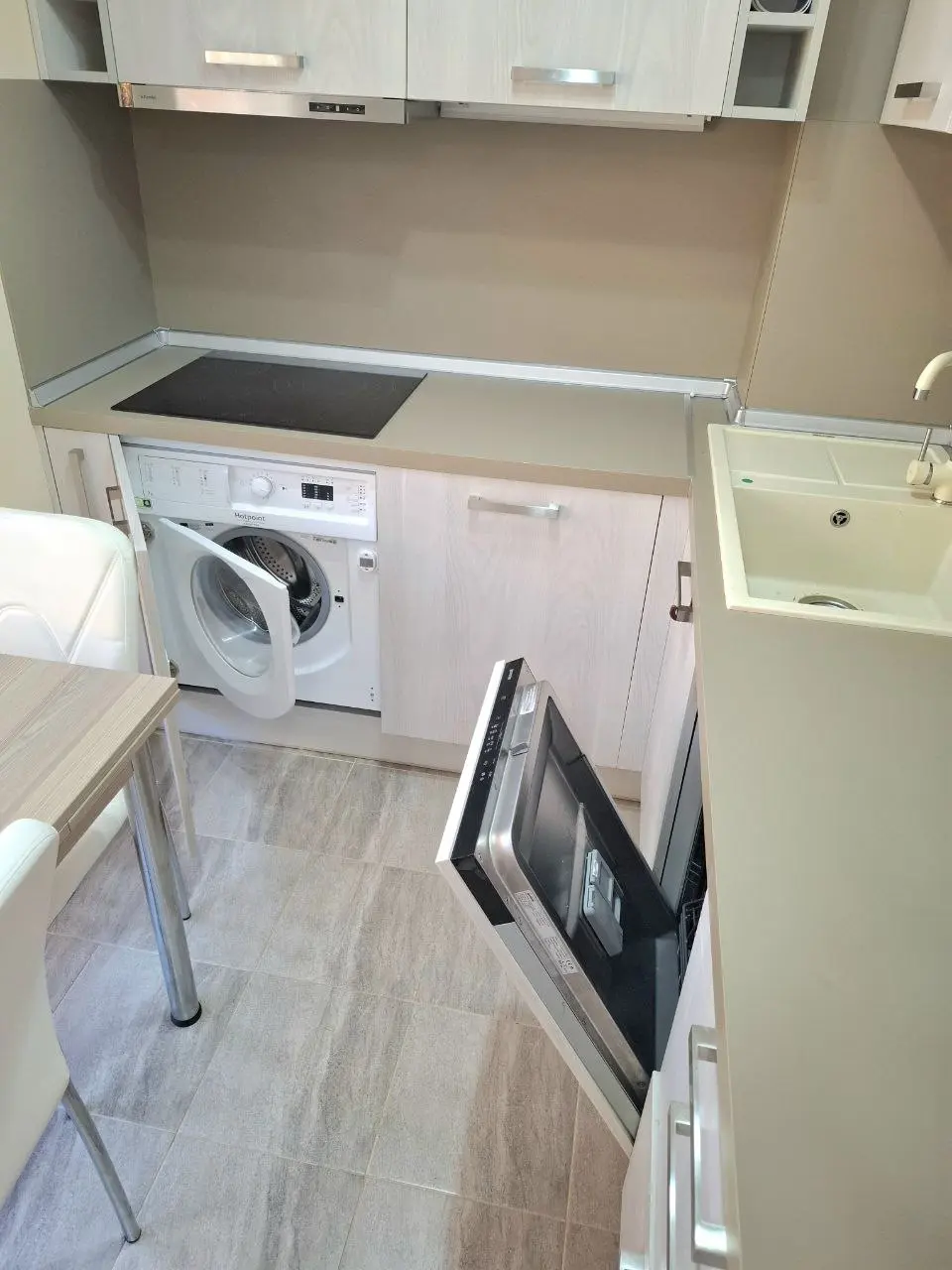 Предлагается к продаже просторная двухкомнатная квартира в жилом доме в исторической части города Поморие. Апартамент площадью 70 м² расположен на 2 этаже и предлагается по цене €124 000. Квартира включает прихожую, ванную комнату, большую гостиную с отдельной кухонной зоной, уютную спальню и террасу. Жилье отличается качественным ремонтом, установлена дорогая кухонная мебель со всей встроенной бытовой техникой, а во всех помещениях оборудованы теплые полы, что обеспечивает комфортное проживание в любое время года. Квартира полностью меблирована и готова к заселению. Дом введен в эксплуатацию и имеет Акт 16. До пляжа и моря всего 100 метров.
