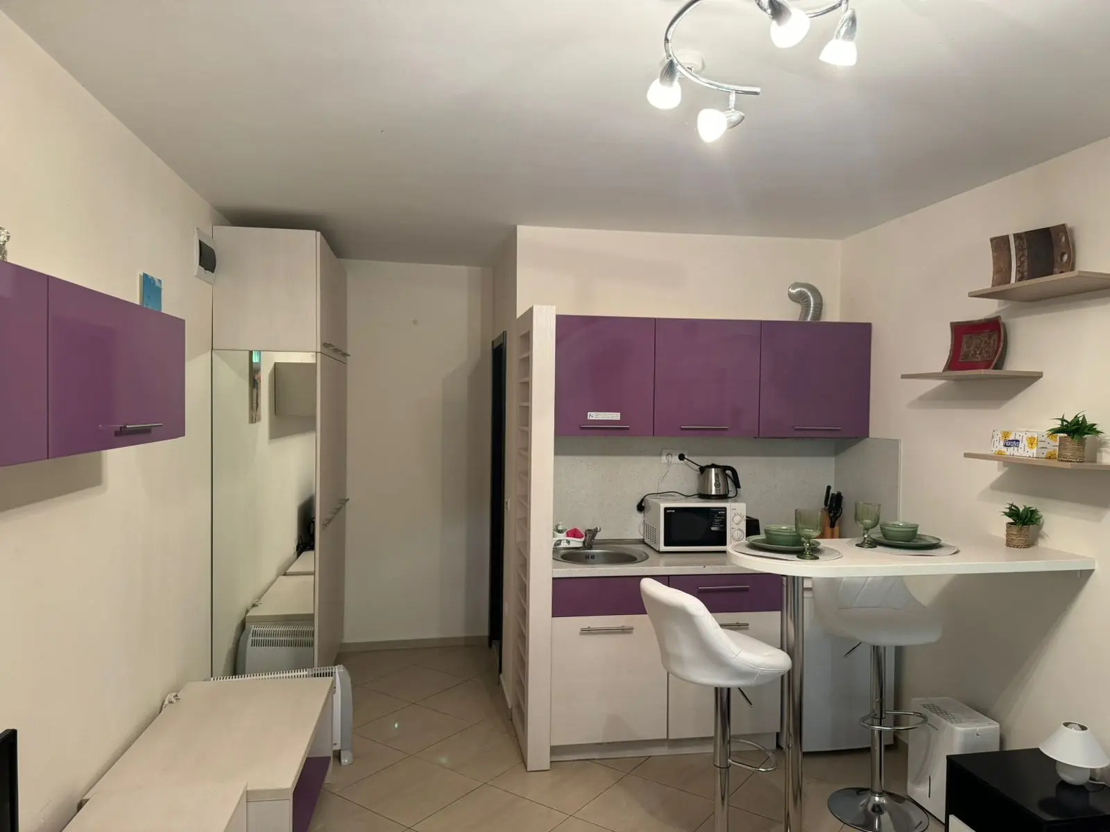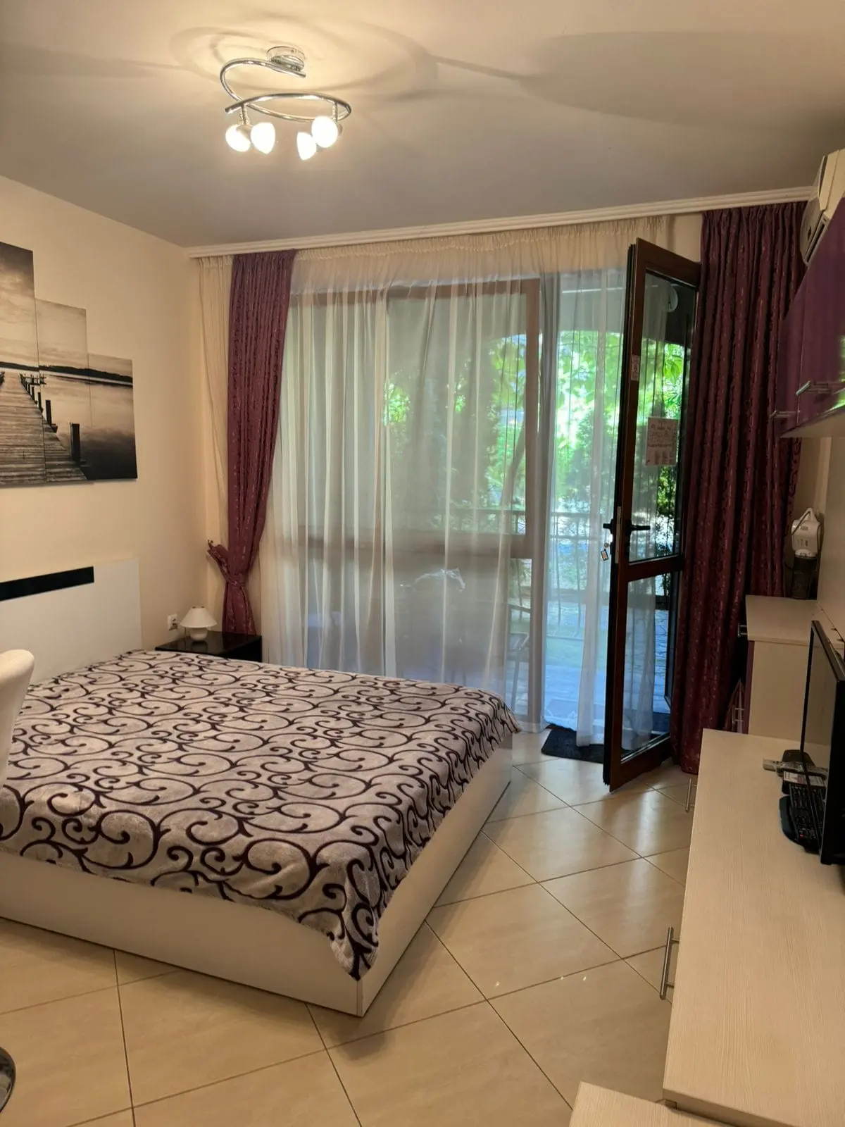 На продажу предлагается уютная студия в популярном семейном комплексе Cascadas Family Resort на курорте Солнечный Берег. Квартира расположена на 1 этаже, общей площадью 34 м², стоимостью €75 000. Здание с лифтом, с Актом 16, такса обслуживания составляет €16,50/м² в год. До моря около 500 м. Студия полностью меблирована и оснащена всей необходимой бытовой техникой, предусмотрен подогрев пола, что делает проживание комфортным в любое время года. Объект подходит как для личного отдыха, так и для сдачи в аренду.