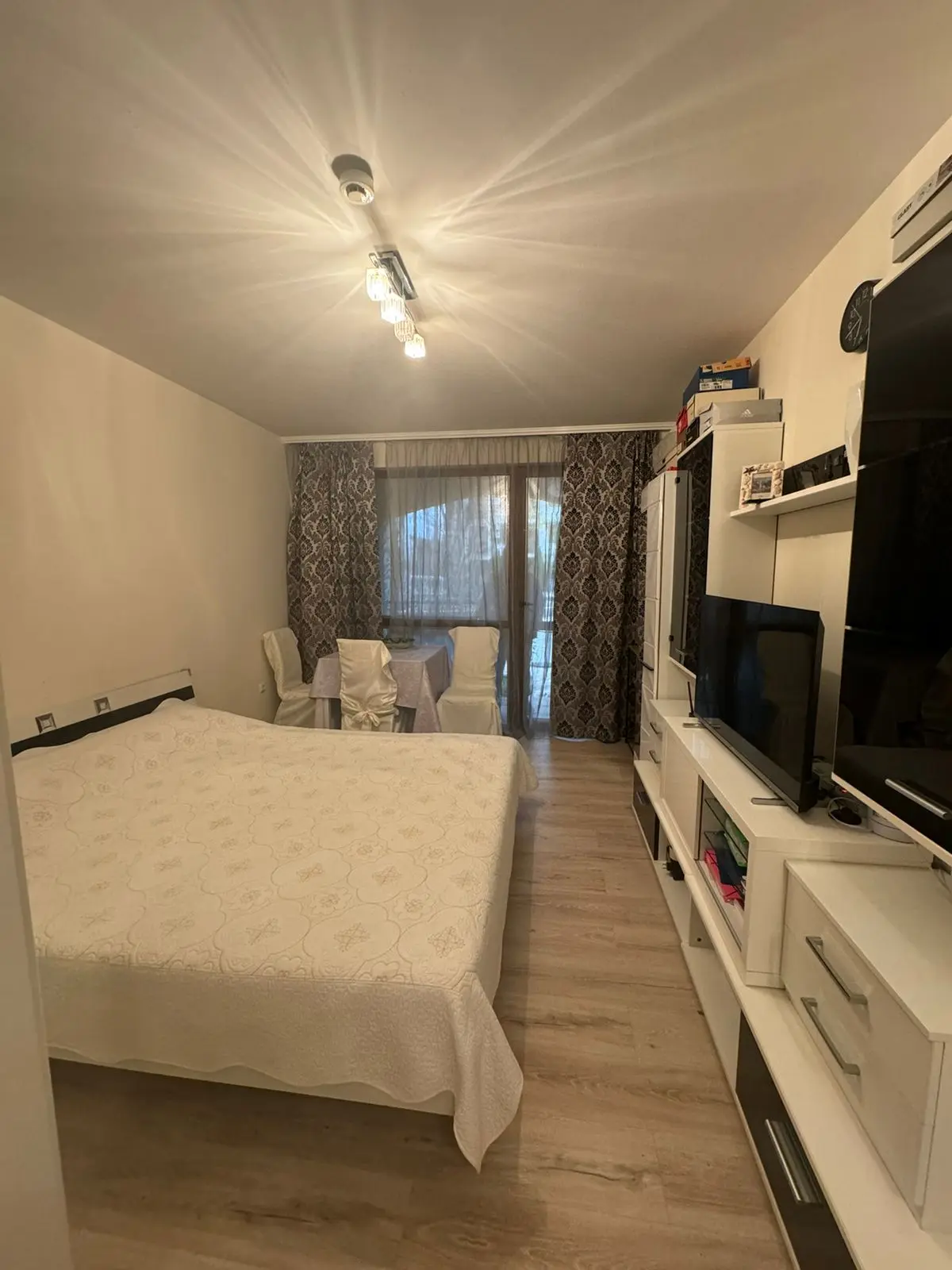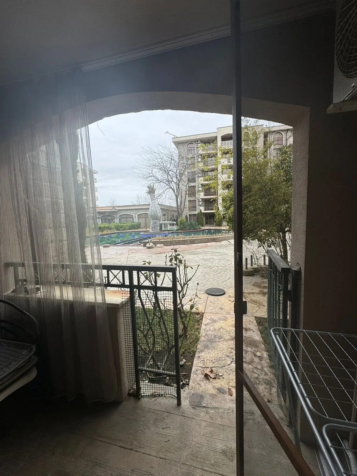 Предлагается к продаже современная студия в одном из самых престижных комплексов курорта Солнечный Берег — Cascadas Family Resort. Апартамент расположен на партерном этаже и имеет площадь 38 м². Планировка включает просторную жилую зону с кухонным уголком, спальную зону, ванную комнату с туалетом и террасу с приятным видом на бассейн и зеленую территорию комплекса. Квартира полностью готова к проживанию или сдаче в аренду. Стоимость объекта составляет 83 000 €, ежегодная такса обслуживания — 17,50 €/м². Здание введено в эксплуатацию и имеет Акт 16. Расстояние до пляжа — около 500 м.