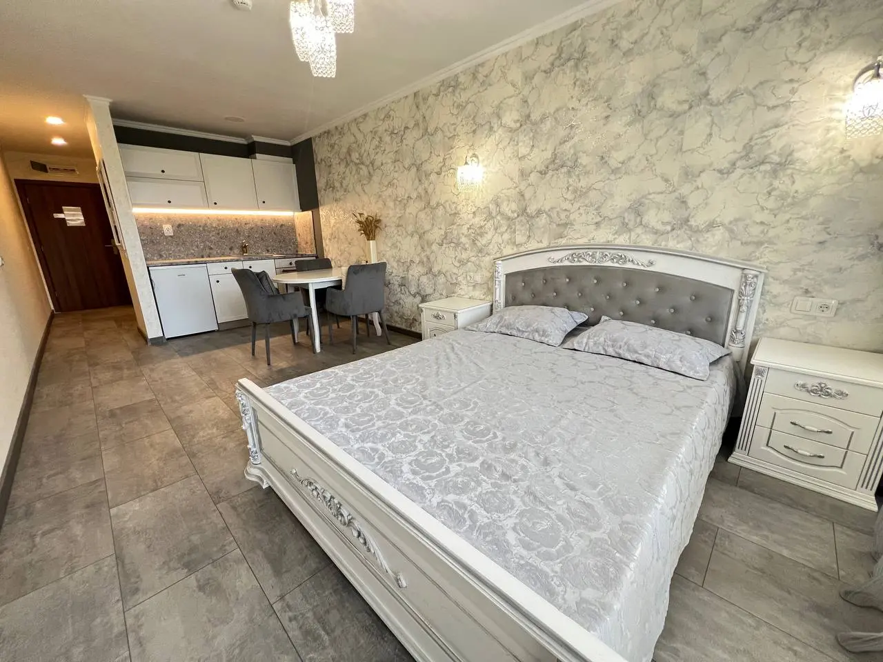 Предлагается к продаже изысканная студия площадью 45 м² в премиальном комплексе Premier Fort Beach, расположенном на береговой линии Святого Власа. Апартамент находится на 2-м этаже шестиэтажного здания и полностью готов к проживанию: выполнена профессиональная отделка, установлена современная бытовая техника и подобрана стильная мебель. Стоимость квартиры составляет 90 000 €, а ежегодная такса поддержки — всего 16,8 € м². Объект имеет статус Акт 16 — можно въехать сразу после покупки.