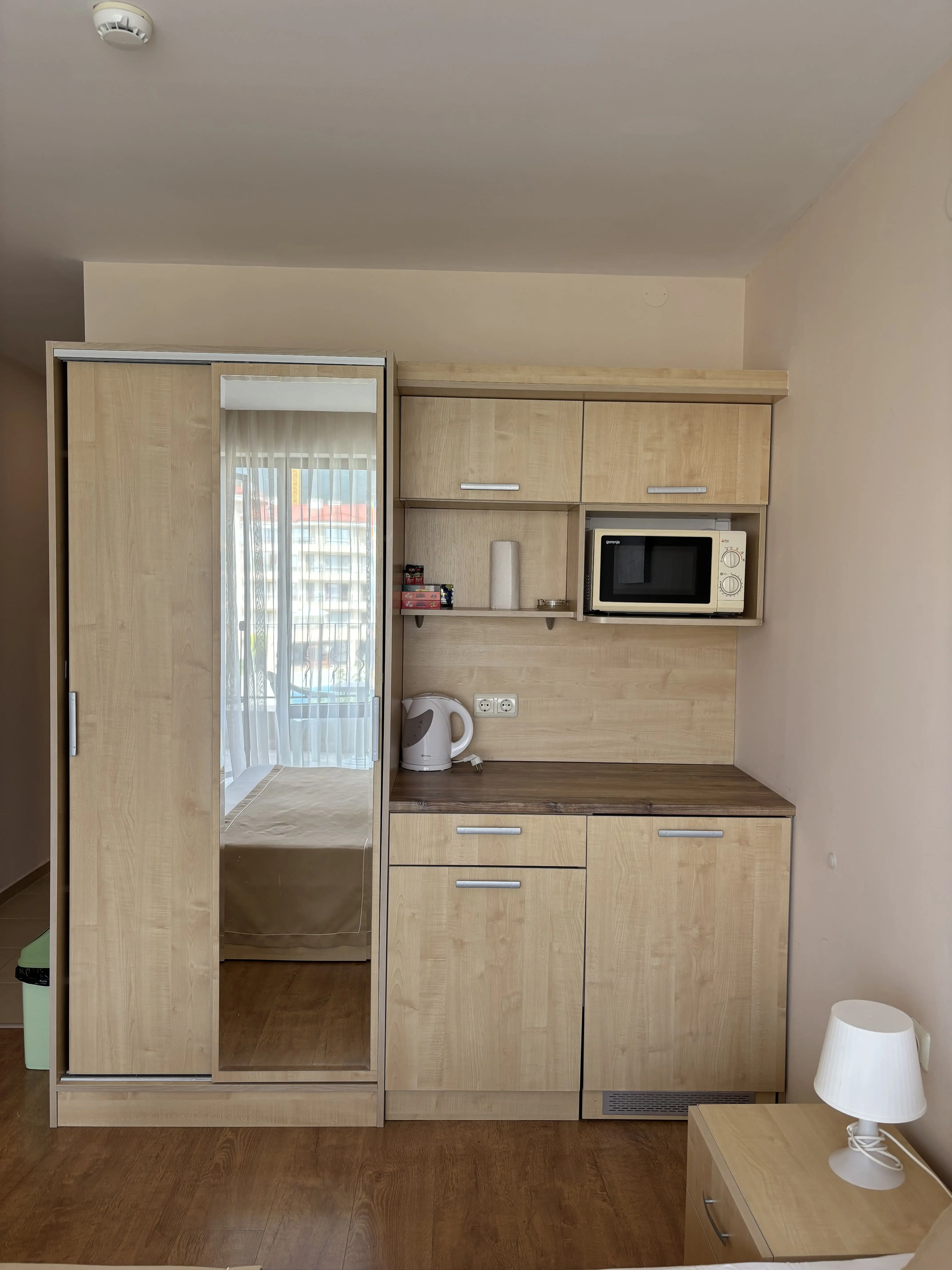 Предлагается уютная студия площадью 39 м², расположенная на 4 этаже современного жилого комплекса у моря. Жилье подходит как для личного отдыха, так и для сдачи в аренду. Апартамент находится в здании с Актом 16 и обслуживается профессиональной управляющей компанией. Такса поддержки — 16,80 €/м² в год.